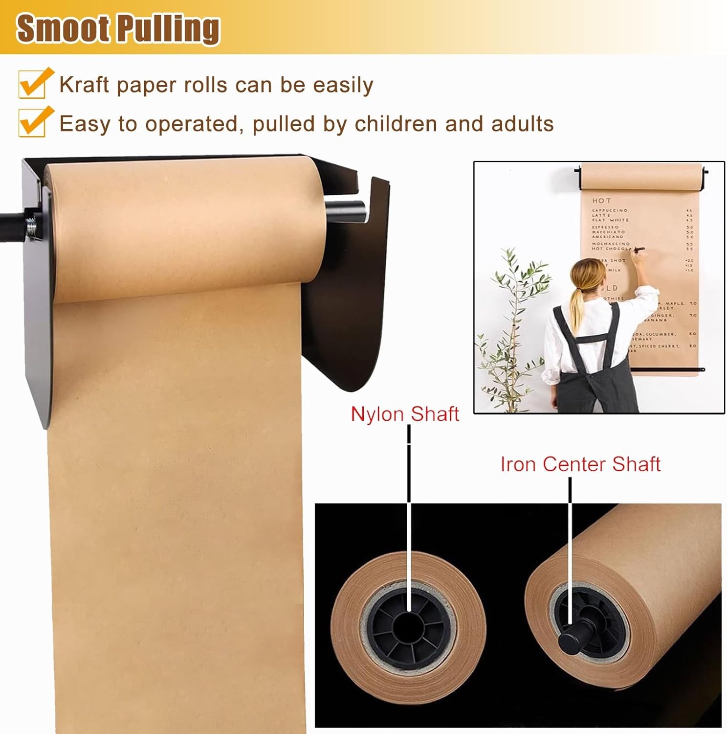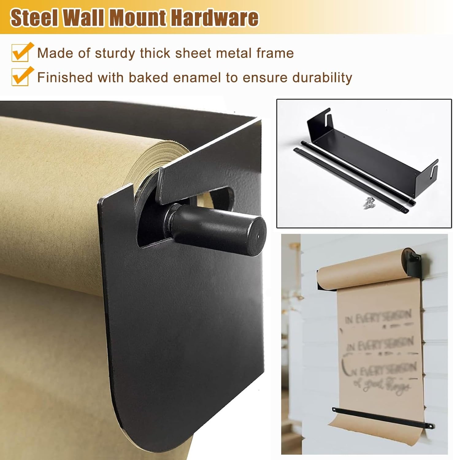 Steel Kraft Paper Roll Holder: Made of solid steel plate with rust-resistant baked enamel finish for durability; if you run out of kraft paper, simply replace the roll.