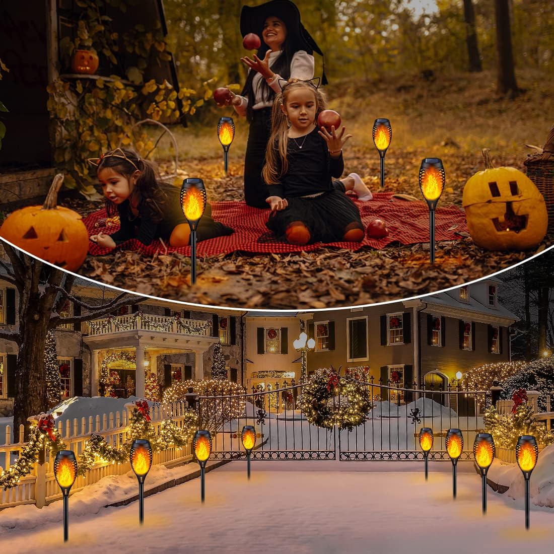 Flickering Flames Torch Lights: IkeeRuic small solar outdoor lights cast a lovely warm glow like flickering flame, a safe alternative to the real “flames”. Solar torch lights are perfect outdoor decorations for patio, garden, porch, yard, pathway, making your yard stand out in the community.