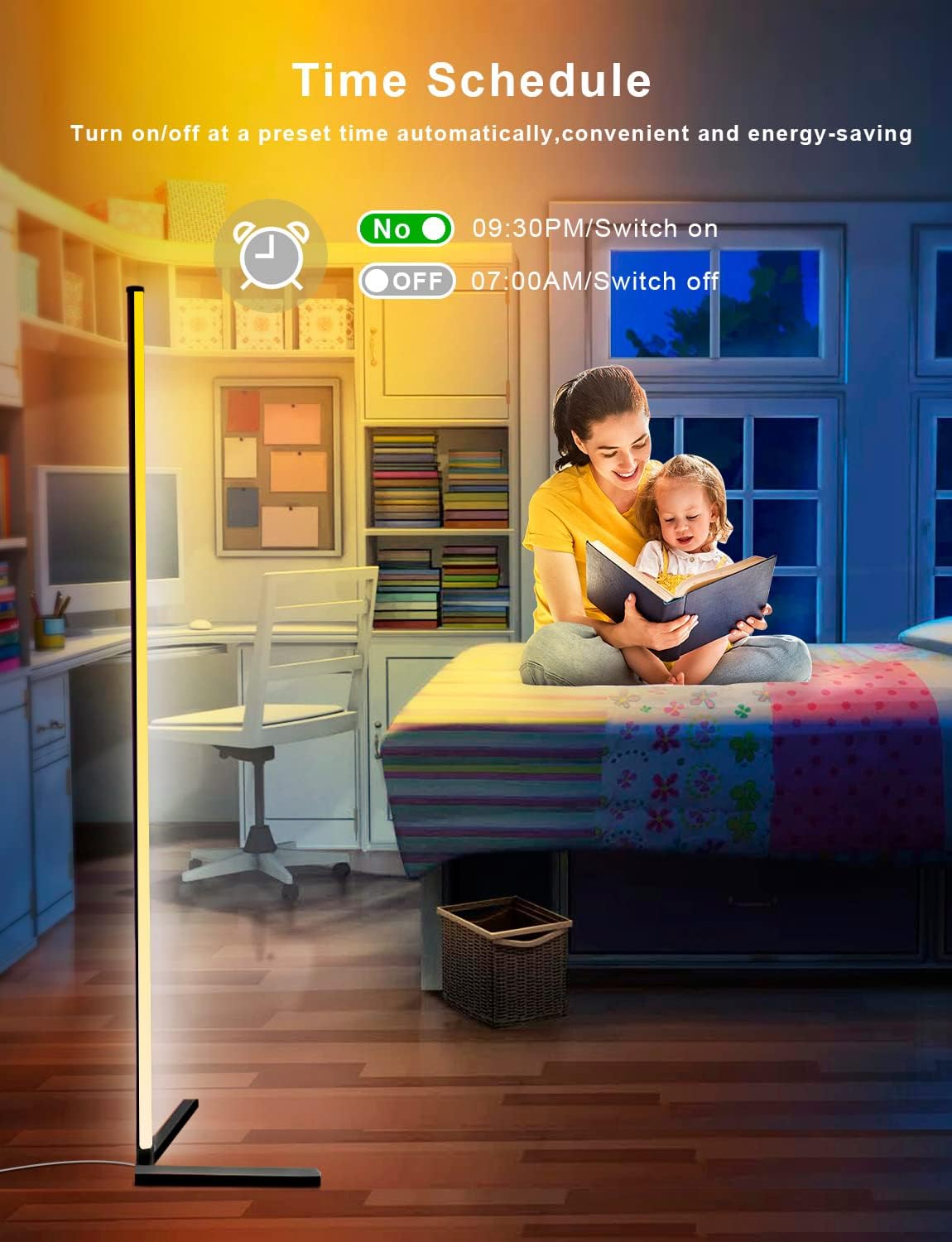 Eye Protection Floor Lamp: With timing function,LanSuper mood lighting corner lamp allows to turn on or off automatically at a set time.Preset your favorite mode and brightness,after timing,RGB corner lamp will wakes you up gradually in the morning with its soft lighting, accompanies you to sleep in the dark night, and provide you a sense of security.Halloween and Christmas are coming soon! Still thinking about what to get that special someone? This floor lamp is an excellent choice.