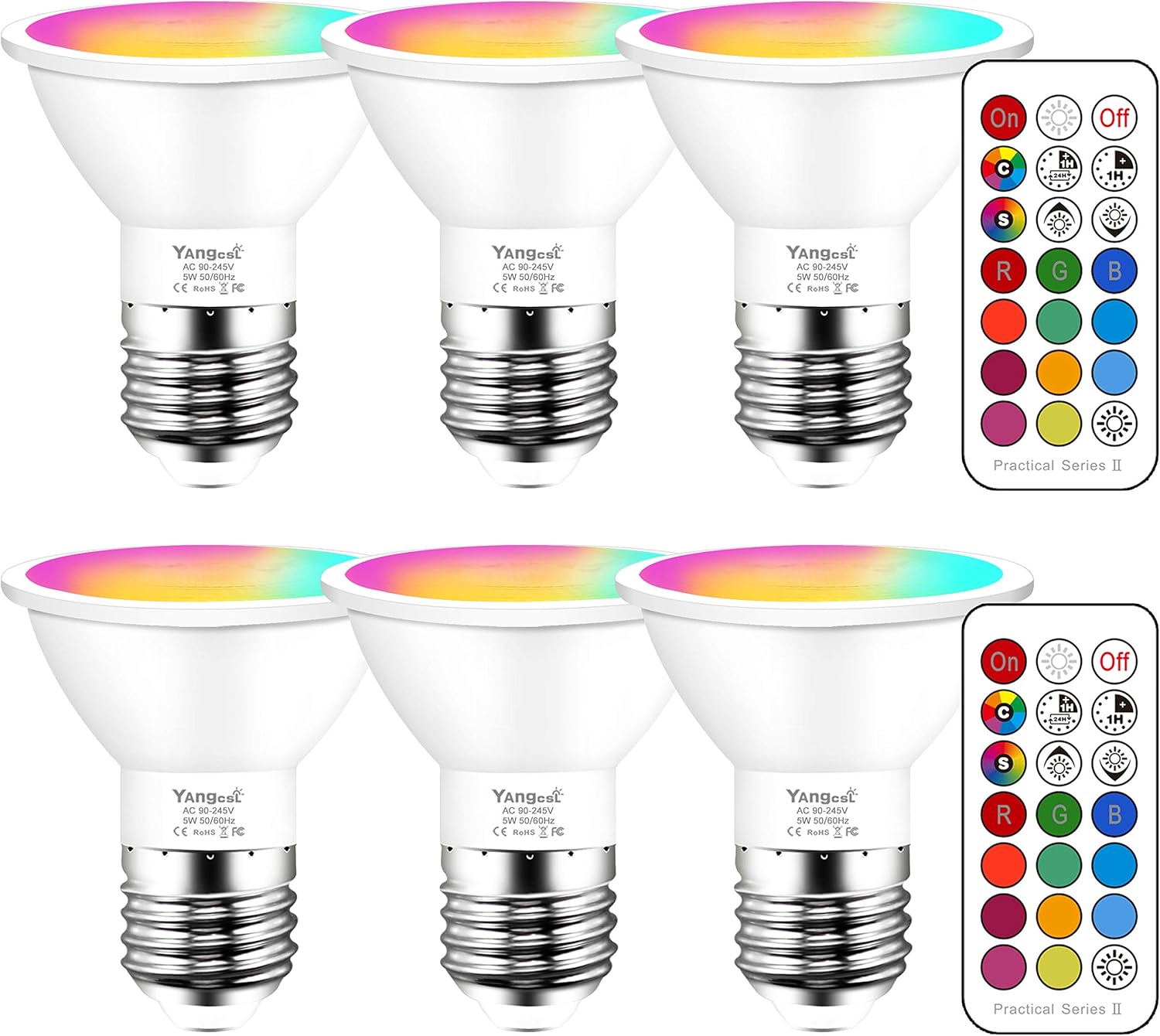 This is a 5W LED color changing light bulb with remote control of improved edition, with 45 degree beam angle, color is uniform. No obvious color splitting.