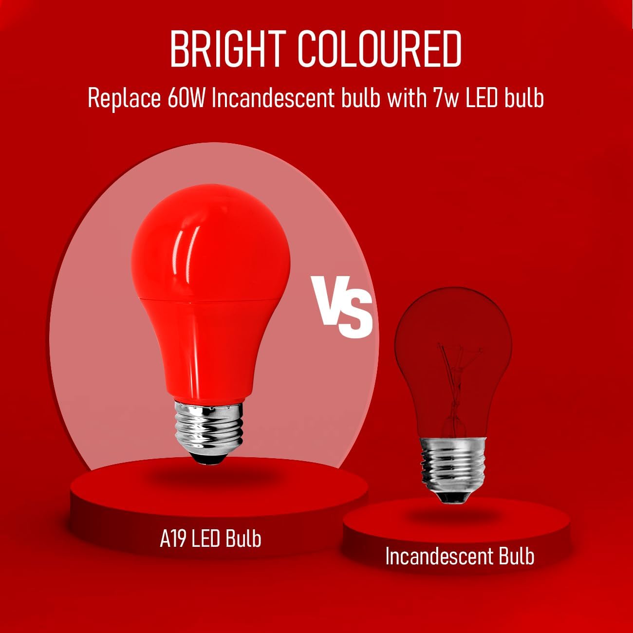 Energy Saving :Save the cost of your lighting with red colored light bulbs that are equivalent to 60 watt incandescents but only use 7 watts of power, uses less energy and endure longer, making it the perfect replacement to an incandescent light