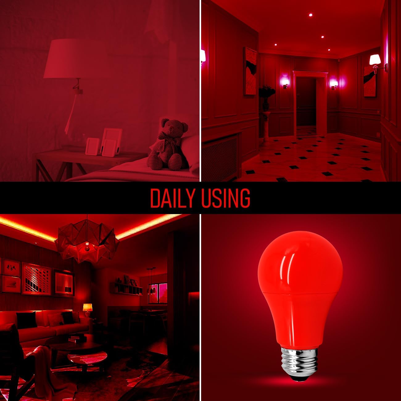 Wide Application :Each Red light bulbs provides bright and vibrant colored light. As a atmosphere creator,red bulb are perfect for Halloween Christmas,Home Lighting(living areas, rec rooms),Holiday Lighting,Party Decoration. porch,Bar Ambiance Decor,adding a kind of color to any environment