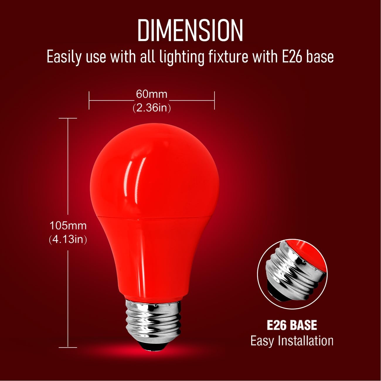 Eco Friendly :A19 Red LED bulbs all materials comply with RoHS and REACH. No breakable parts and free of toxic chemicals, lead and mercury free. Safe for your family and environment