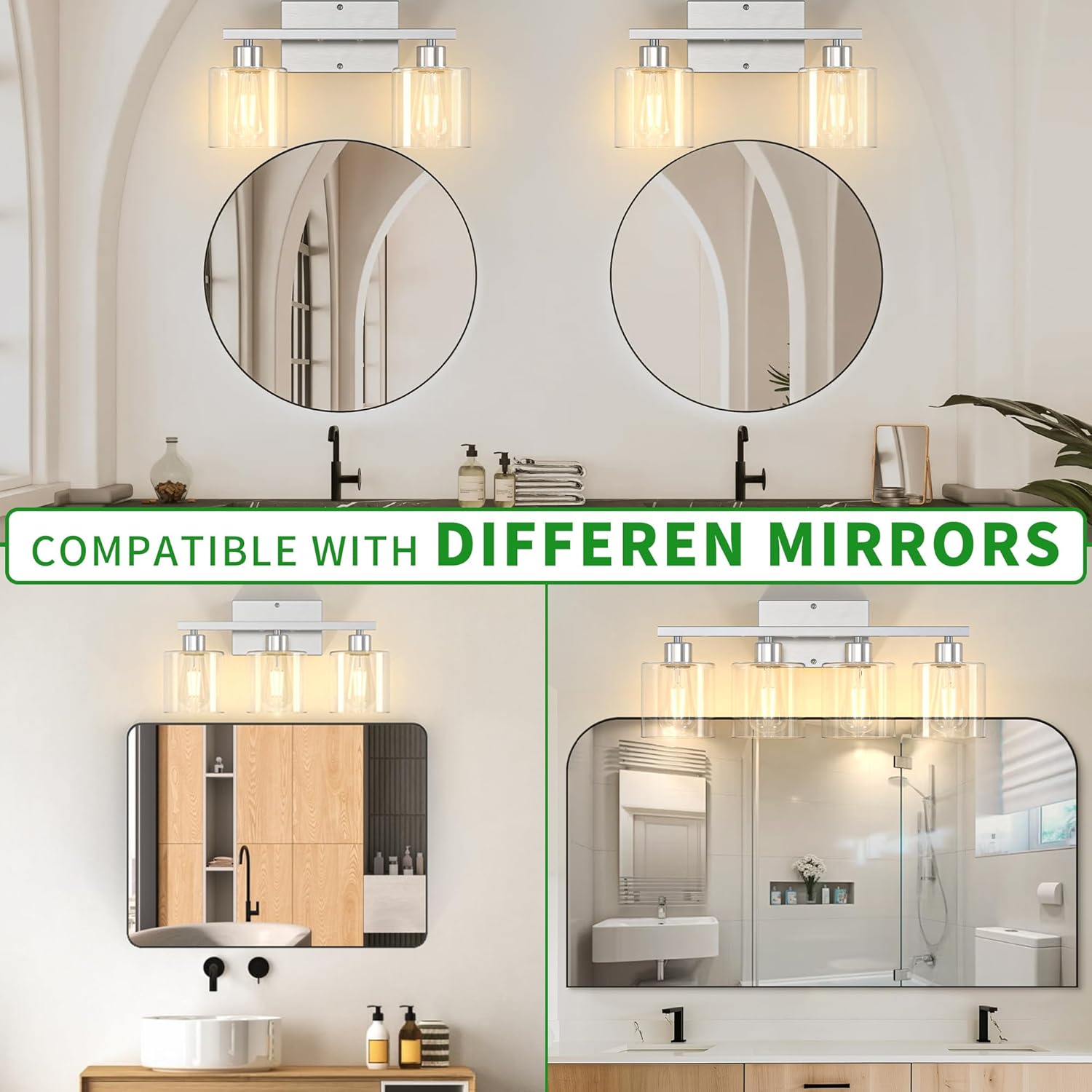 High-Quality & Moisture-Resistant – Ideal for Humid Spaces:Built with premium metal materials and a protective IP44 moisture-resistant rating, this vanity light is designed for bathrooms, laundry rooms, and other damp environments. The thick tempered glass shades ensure maximum light output while protecting the bulbs, making it an excellent choice for both home and commercial spaces.
