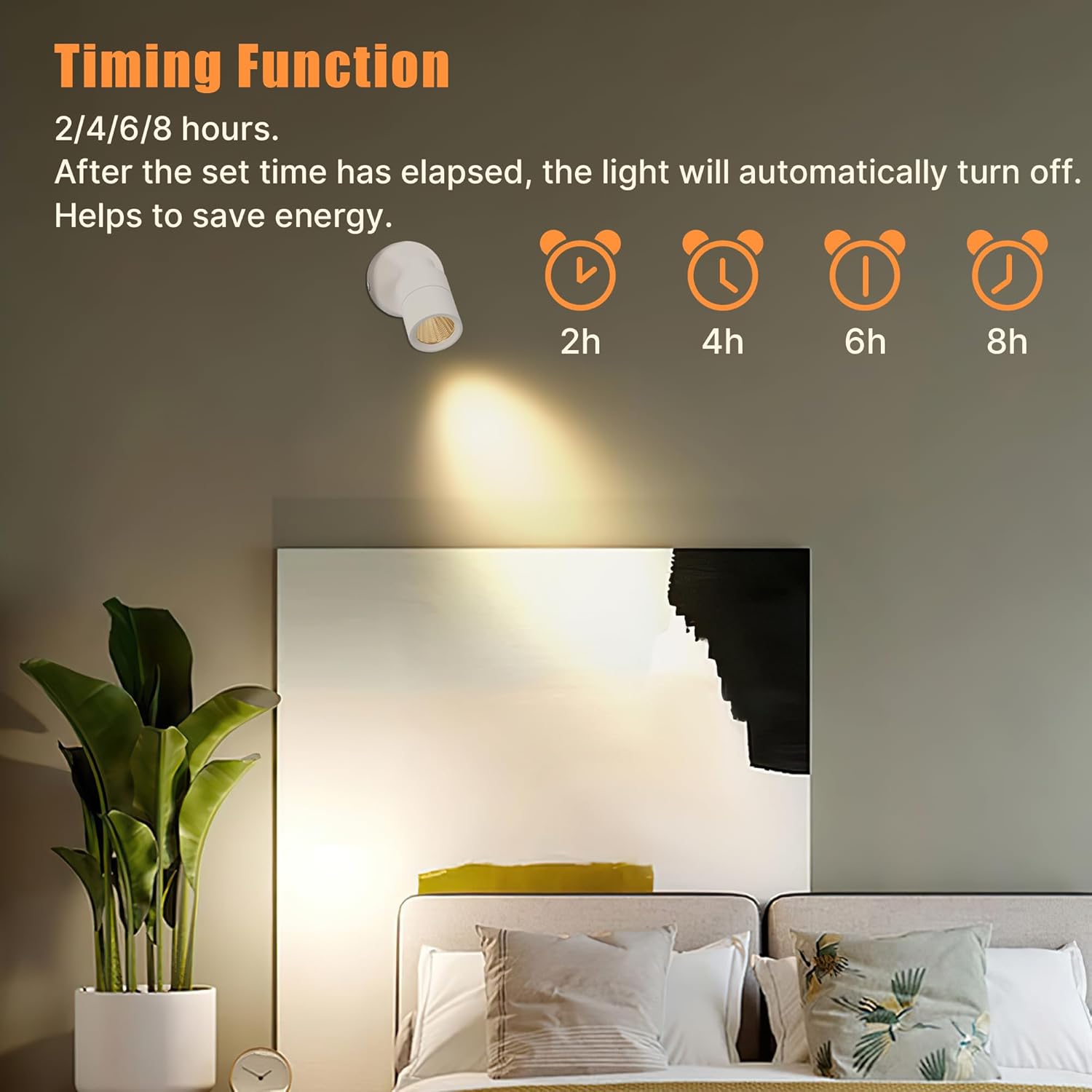 Spotlight Control:Remote control allows you to maneuver the LED spotlight within a 15m range. When you don’t want to keep consuming power and you always forget to turn off the lights, you can use the timer function.The lights are set to automatically turn off at 2H/4H/6H/8H as a way to save energy. The best part is that the accent light has a memory function. Preset lights will not reset when the lights are turned off and will continue to operate in the previous mode when power is restored