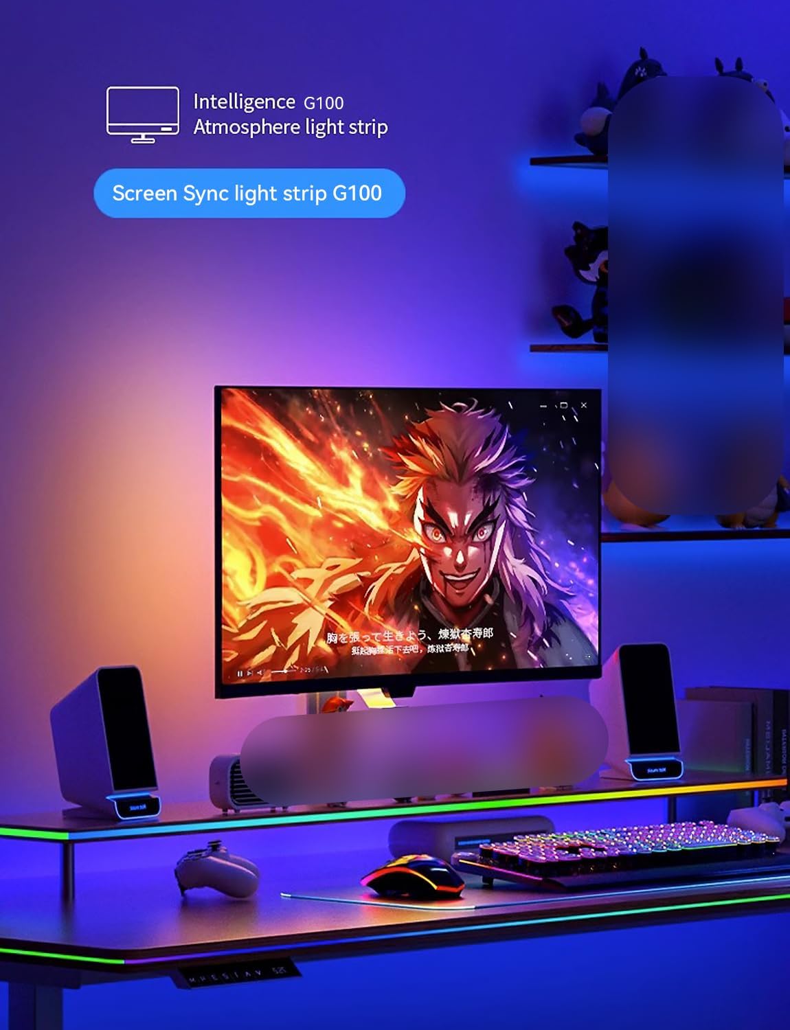 Easy to Install: G100 is suitable for 24-32 inch computer screens, after downloading the software (PC or Mac), plug the USB port of the light strip into your computer case, the computer will automatically recognize your light strip.