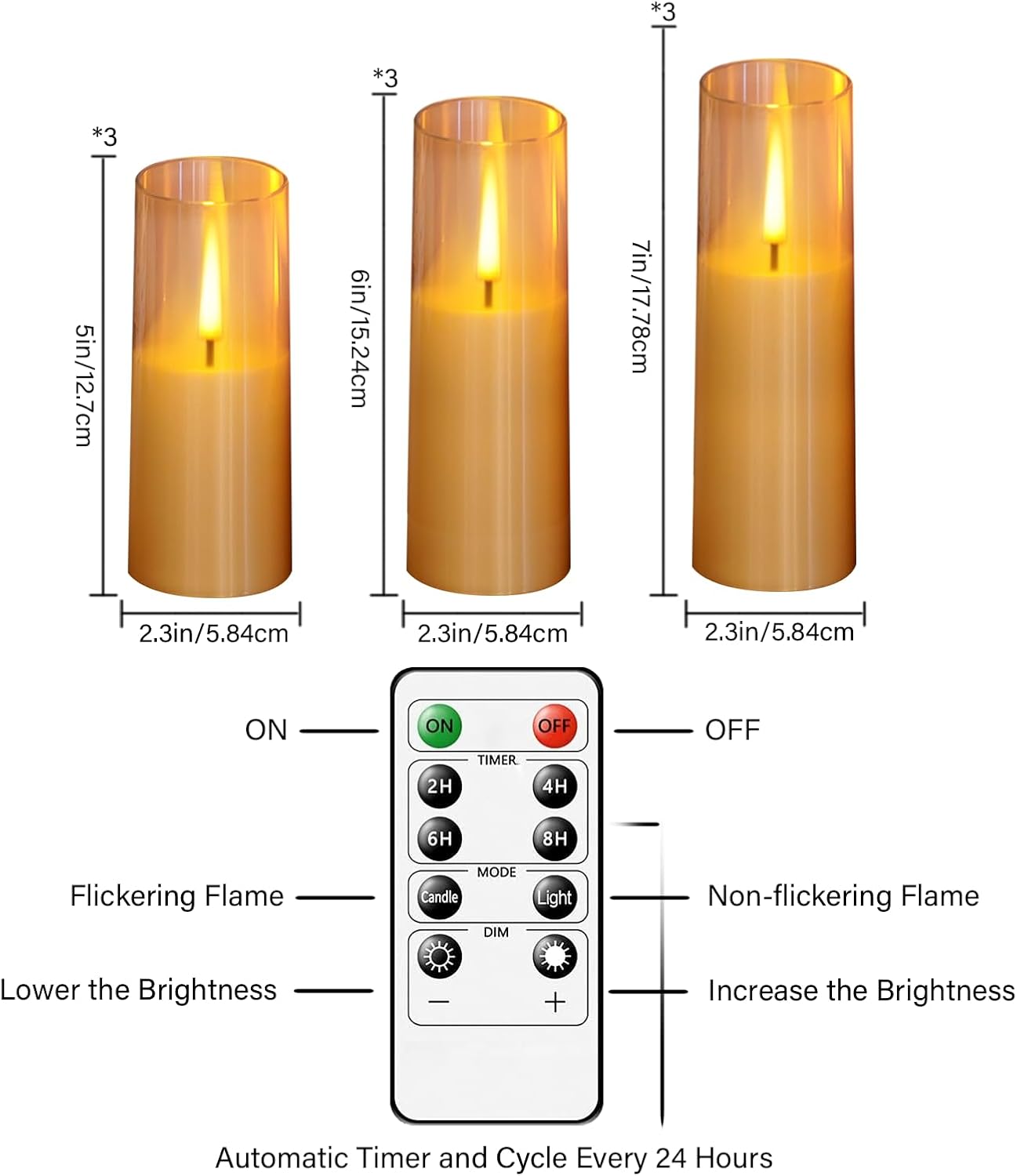 ✨【Packaging Contains】The set includes nine flameless pillar candles(2.3″x5″5″5″6″6″6″7″7″7), two remote control, and an instruction sheet, making it easy to set up and enjoy your new candles. Each battery operated candle is powered by 2 AA batteries (not included), offering a hassle-free, cordless lighting solution.