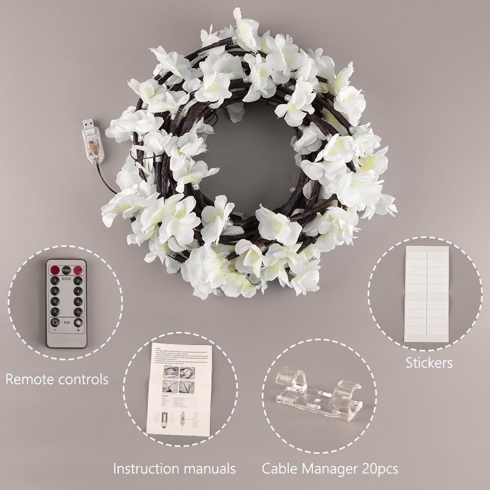 🌸【Flexible Branches】: The bendable design of the cherry blossom branches enables users to shape and adjust them according to their preferences, providing a customizable lighting experience that aligns with individual tastes and design aesthetics.