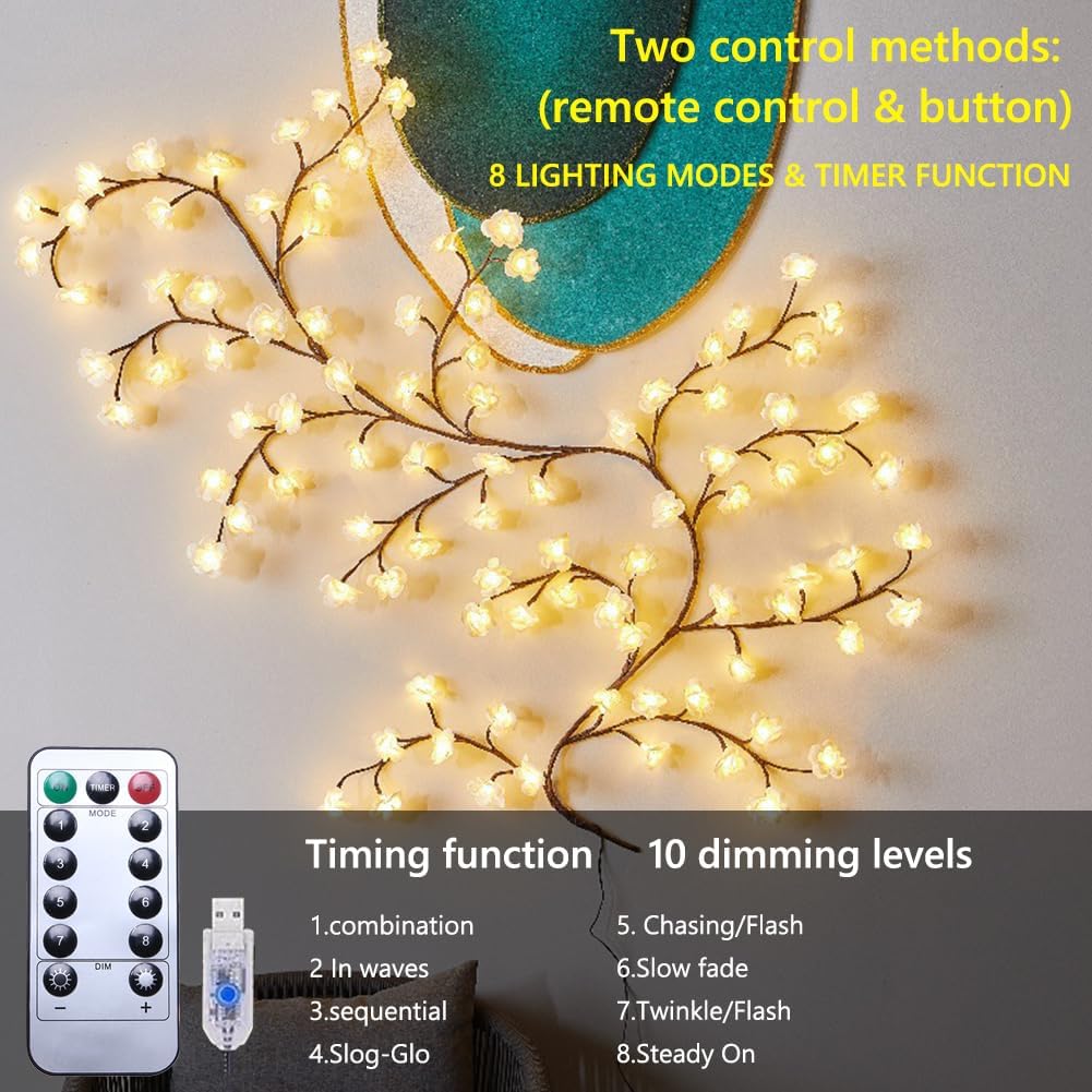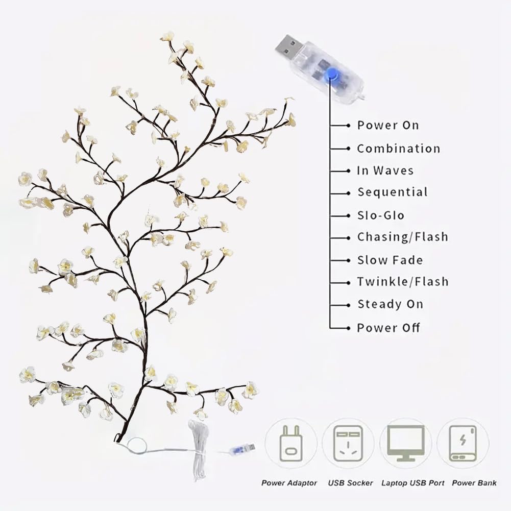 🌸【8 Light Modes & Timers】This LED tree branch features a remote control that allows you to switch between 8 different flashing modes: combination, wave, sequence, slow light, chasing/flash, slow fade, twinkle/flash, and steady on. Additionally, it includes a timing function to accommodate your various lighting preferences.