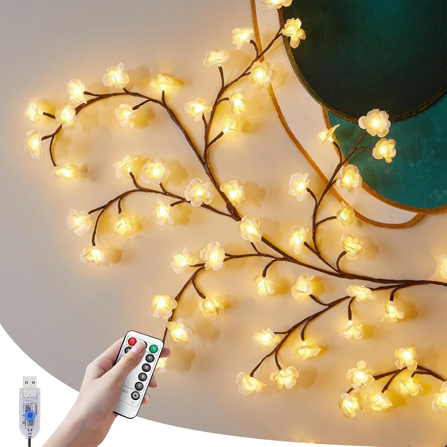 🌸【Cozy Fairy Lights】: The eco-friendly LED beads are designed for high brightness with low energy consumption, ensuring the vine lights for bedroom remains cool to the touch even after extended use. Equipped with built-in LED beads, the led tree branch emits a soft and enchanting glow, perfect for creating a cozy and romantic ambiance in any setting.