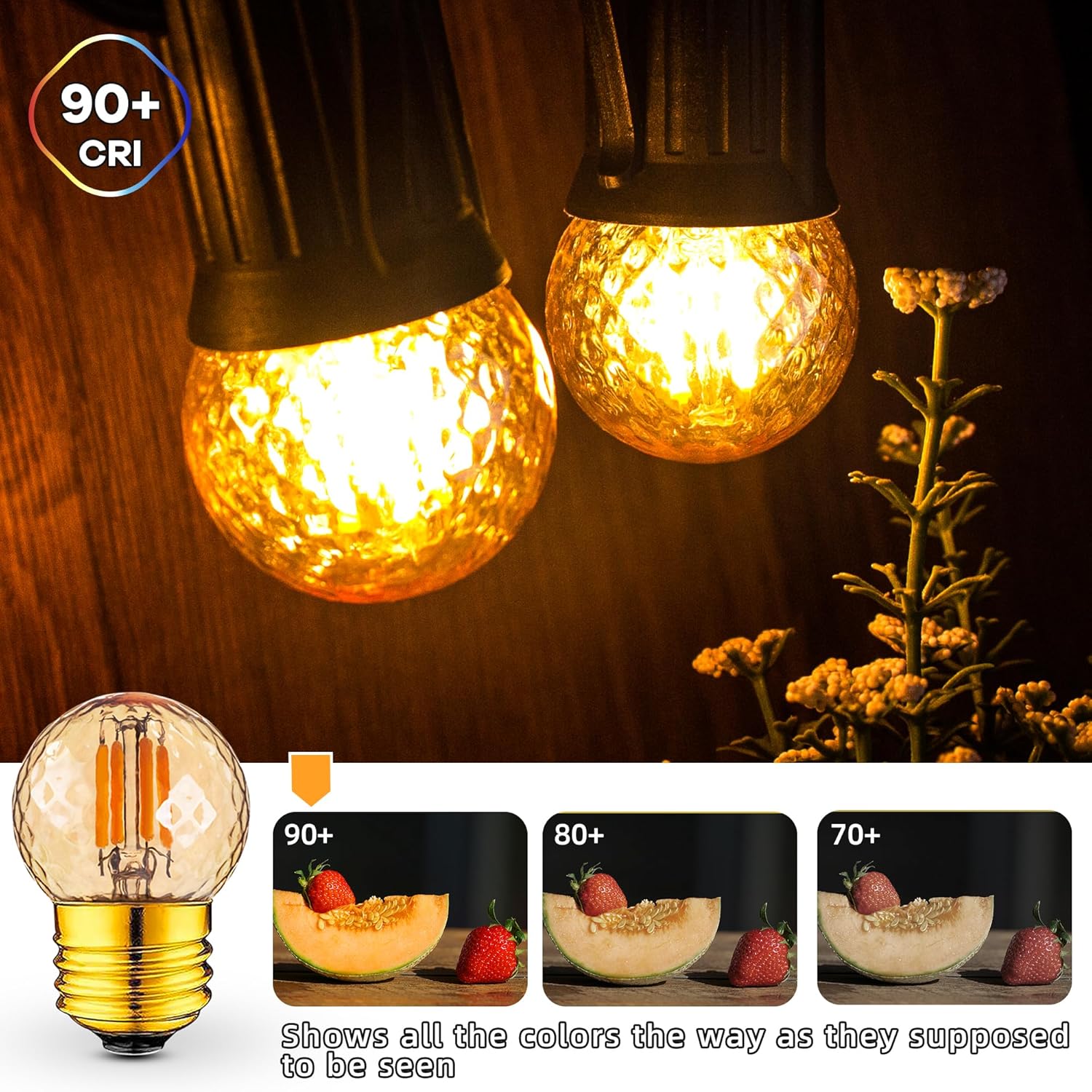 [PERFORMANCE] The amber small light bulb emits 2700K warm white light, lights up instantly without flickering or buzzing, the soft light is very friendly to your family’s eyes. It also has overload protection, short circuit protection and over temperature protection for home life!