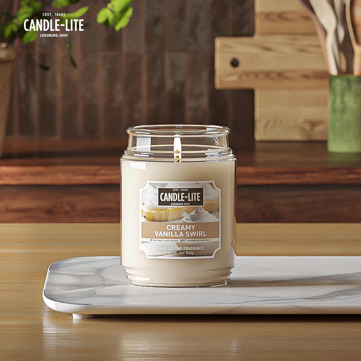 Candle-lite is America’s #1 candle. Bring that warm, out of the oven, scent into your home with this Creamy Vanilla Swirl scented candle. This sweet vanilla scent offers the scrumptious aroma of warm buttery shortbread baked to perfection, frosted, and sprinkled with sugar. Measuring 5.8″Hx 3.89″D, this Candle-lite candleis the perfect size to place in any room. Enjoy a calmingglow no matter where you arewith this 18 oz. large candle.This single wick candlehas a 100% cotton wick, is lead free,and burns up to 110 hours. The off-white colored paraffin wax candle maintains a consistent burn. Always remember to candle with care and burn within sight. Keep candles away from children, pets, and things that can catch fire. Stop use when .5” of unmelted wax remains and extinguish every 4 hours for cooling. Trim the candle wick to .25” prior to each use. Lighting America’s hearts and homes since 1840, Candle-lite Company has been crafting quality candles in Ohio’s heartland for over 180 years. Create an inviting atmosphere with these candles for home scented with varied fragrances suitable for all the different rooms.