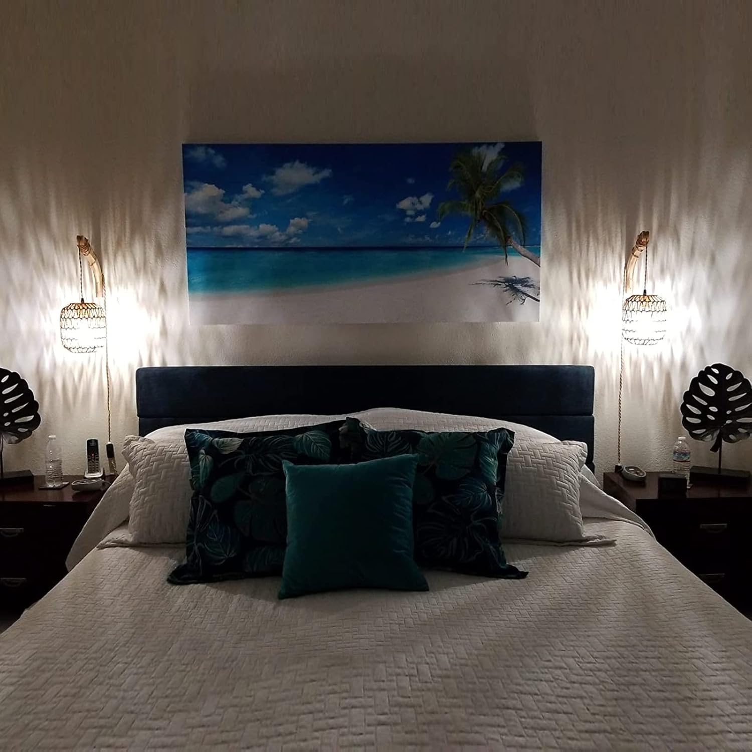 💡【 Best Farmhouse Decor】This boho plug in wall lamp with the marvelous look is ideal for your hallway, farmhouse, stairway, kitchen, bedroom, living room, dining room perfectly, working well with any E26 base bulbs, incandescent or LED bulbs.You can create desired atmosphere by using light bulbs in different shades/colors.Soft lighting for a warm atmosphere.