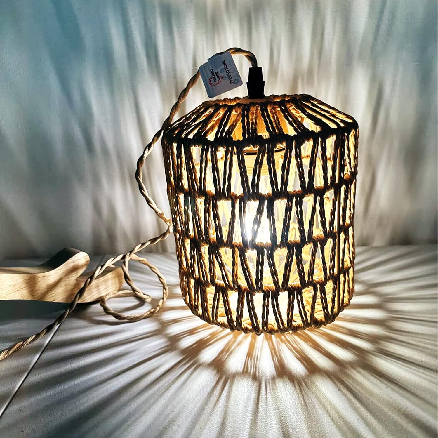 Hand woven paper rope lantern lampshade & farmhouse wood holder,creates a pretty new look.The lantern shade can cast an even light and decorative light patterns in the room while adding timeless elegance and enhance your home decor.The wooden holder will add a touch of retro to your home.