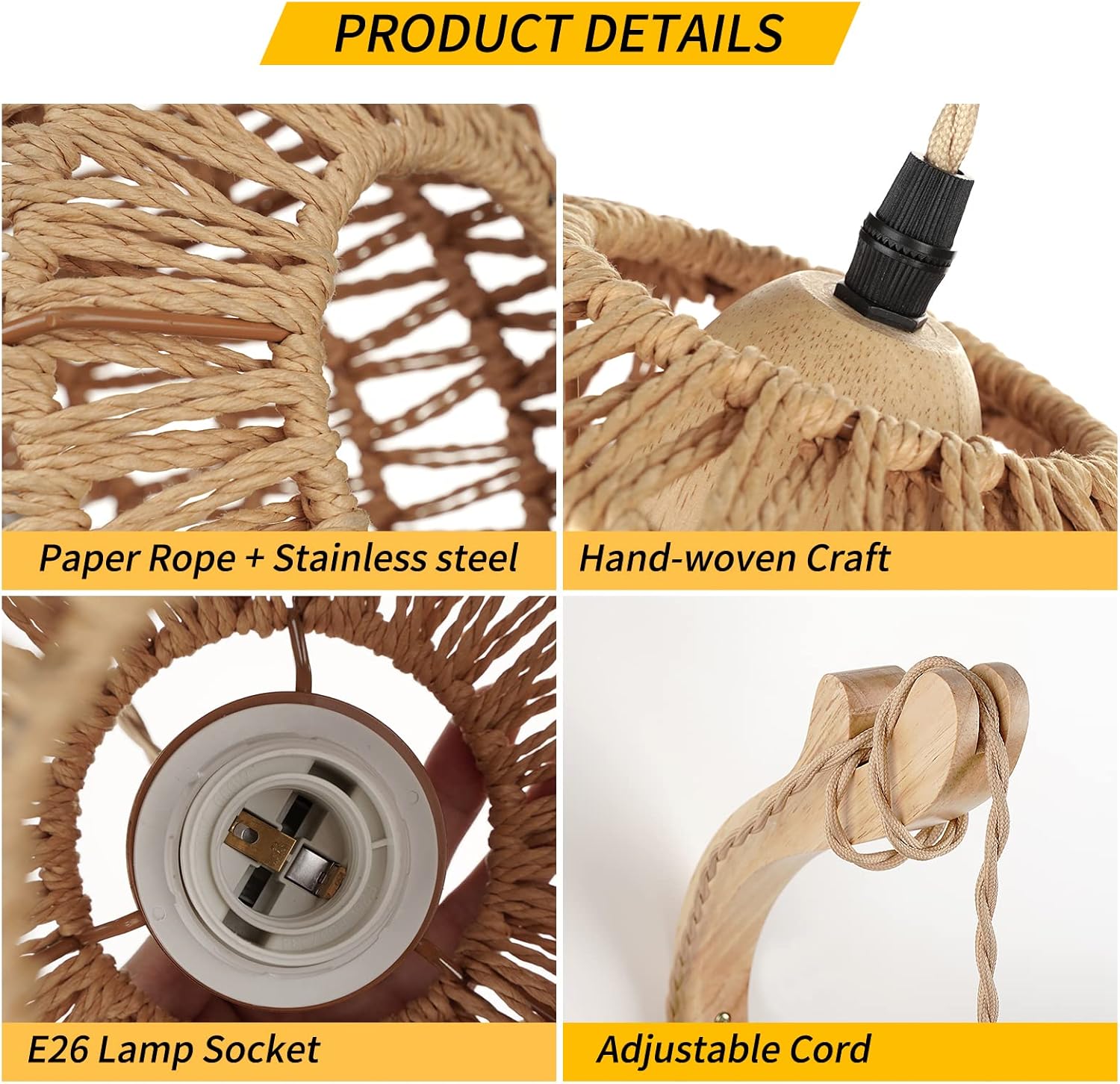 💡【Easy installation】This rattan plug in sconce is very convenient to install.Simple structure design allows you to easily install independently without an electrician.The hand woven lantern lampshade will help to protect the bulbs, safer during usage while maximizes its light.The boho wall sconce has high temperature resistance, anti-aging and high light transmission performance.