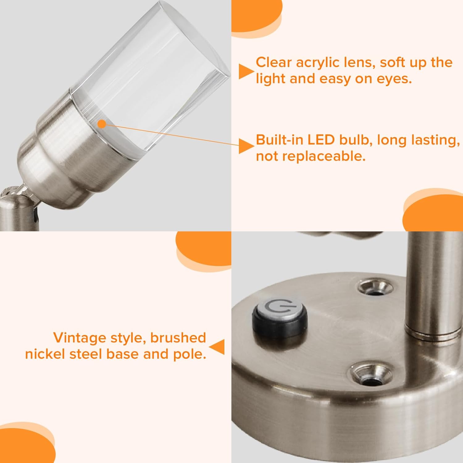 Energy-Efficient 3000K LED Bulb – Integrated 2-watt LED bulbs deliver 100 lumens of warm, eye-friendly light for reading or task lighting. The set-in 3000K LEDs ensure zero bulb replacements, combining longevity (30,000+ hours) with crisp, flicker-free illumination.