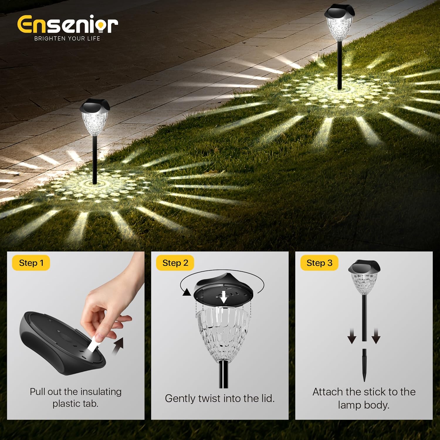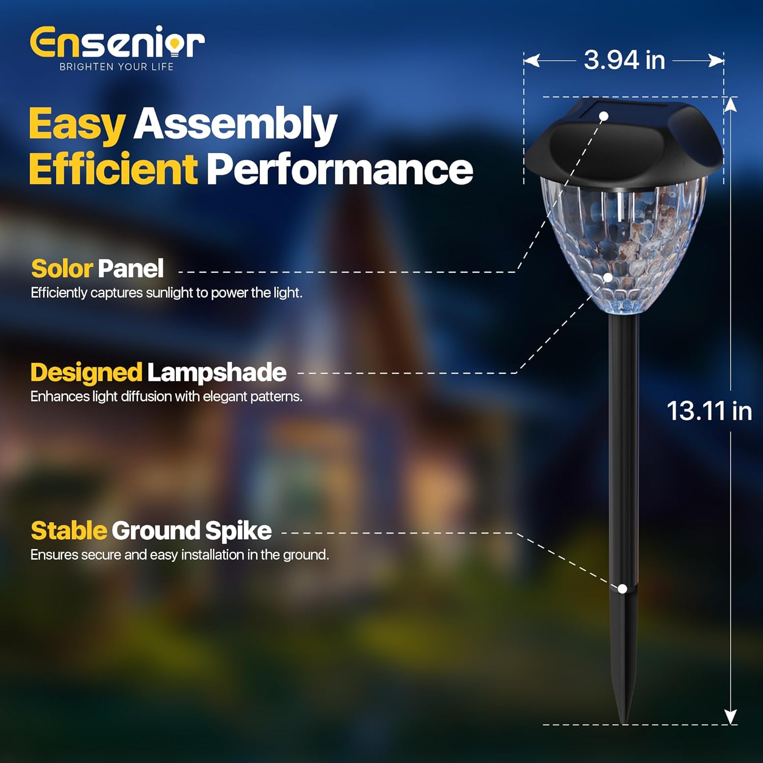 Quick & Secure Installation – Sturdy ground spike and twist-on design allow easy setup in minutes. Solar panel optimizes sunlight capture for consistent lighting.