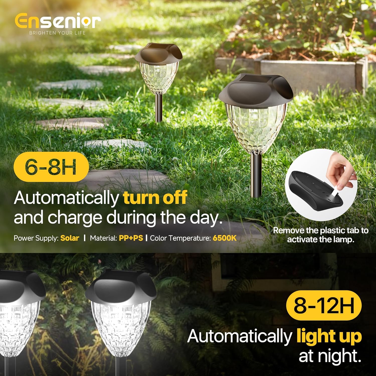 Smart Solar Efficiency – Charges in 6-8 hours of sunlight, providing 8-12 hours of 6500K cool white illumination. Eco-friendly and hassle-free.
