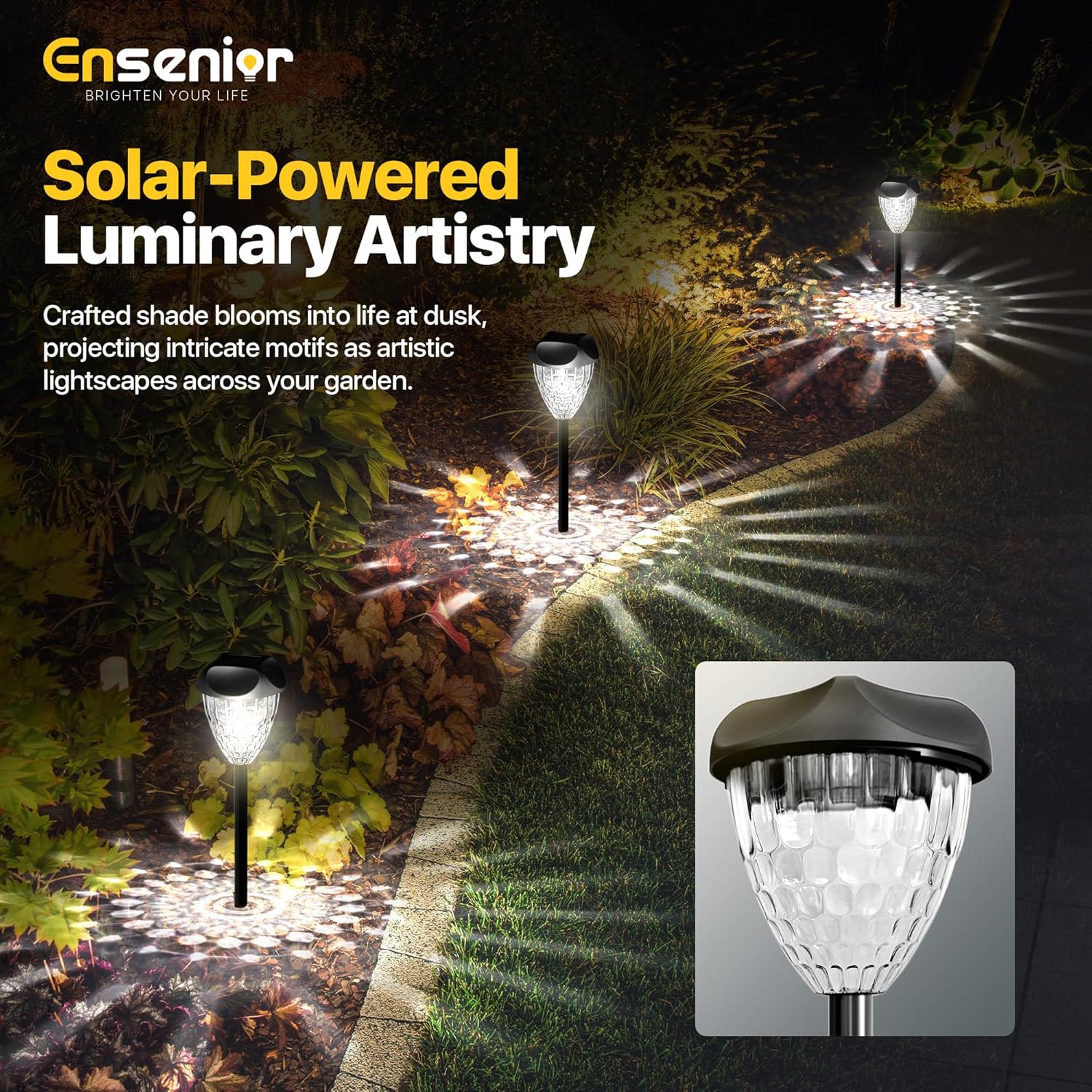 Solar-Powered Luminary Artistry – Elegantly designed to illuminate your garden with intricate light patterns at dusk, blending art and nature for a serene outdoor ambiance.