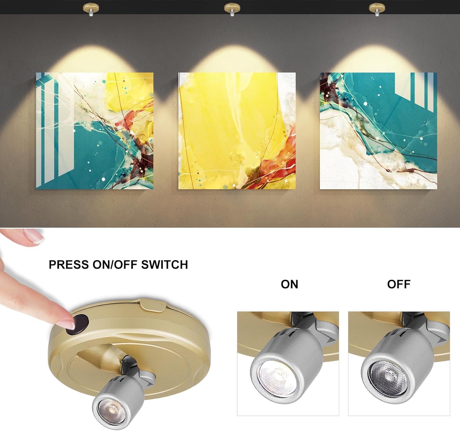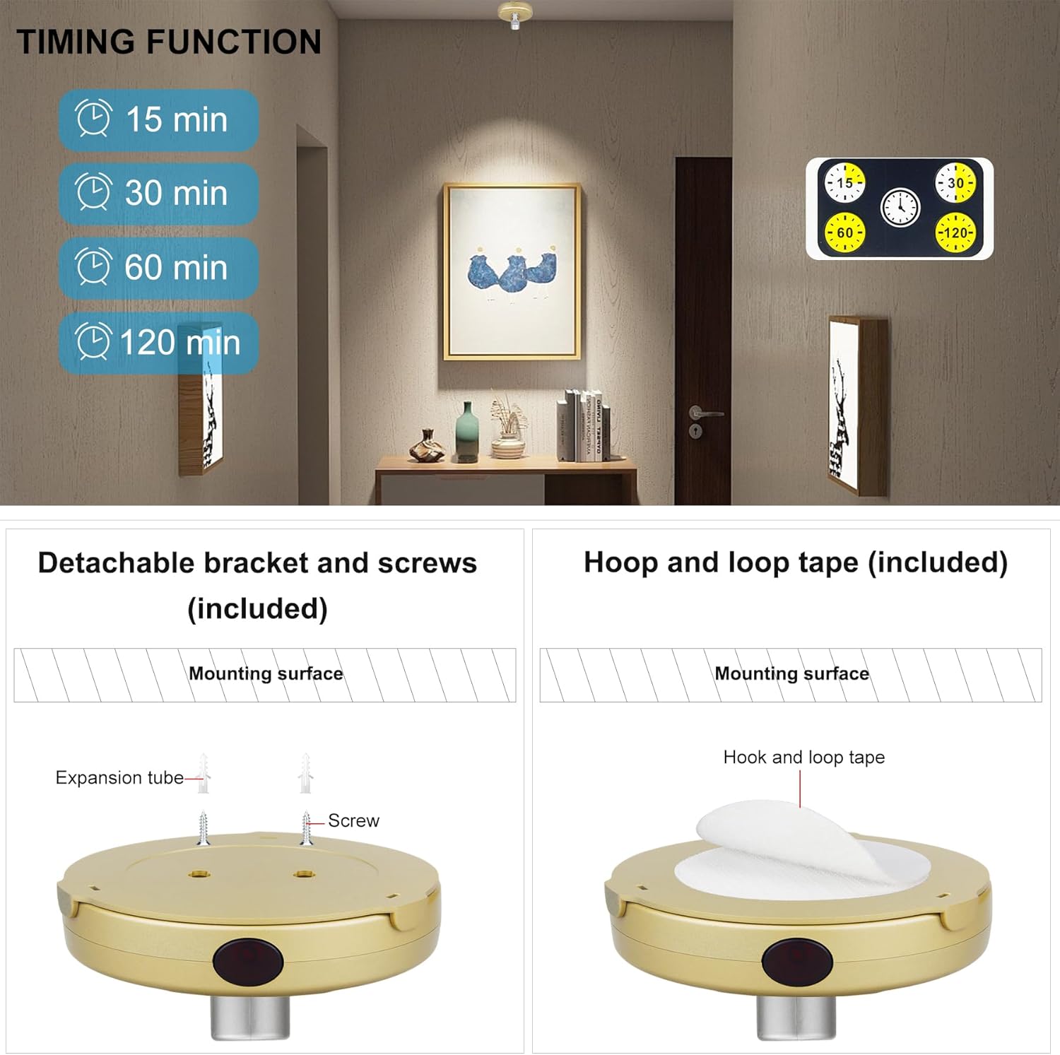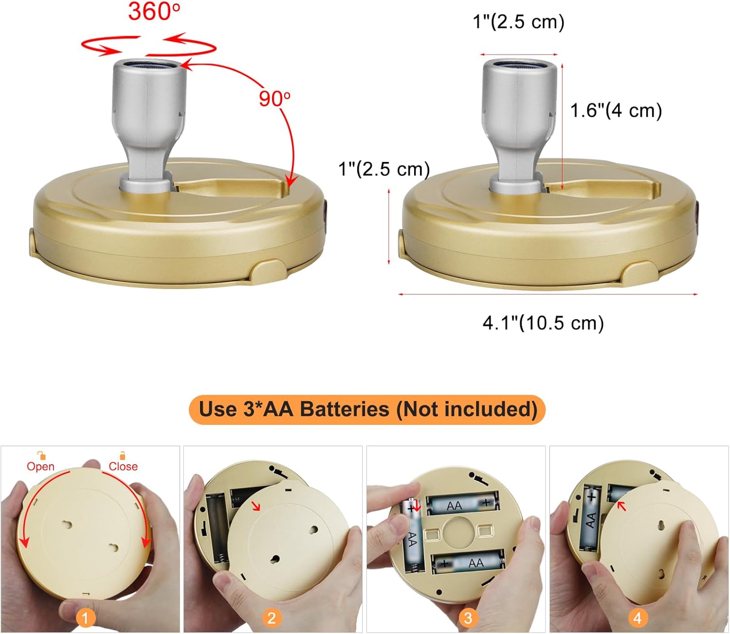 【BATTERY OPERATED SPOTLIGHT】 – Powered by 3 AA batteries(not included), Easy to install with hook loop tape or screw mounting (included).