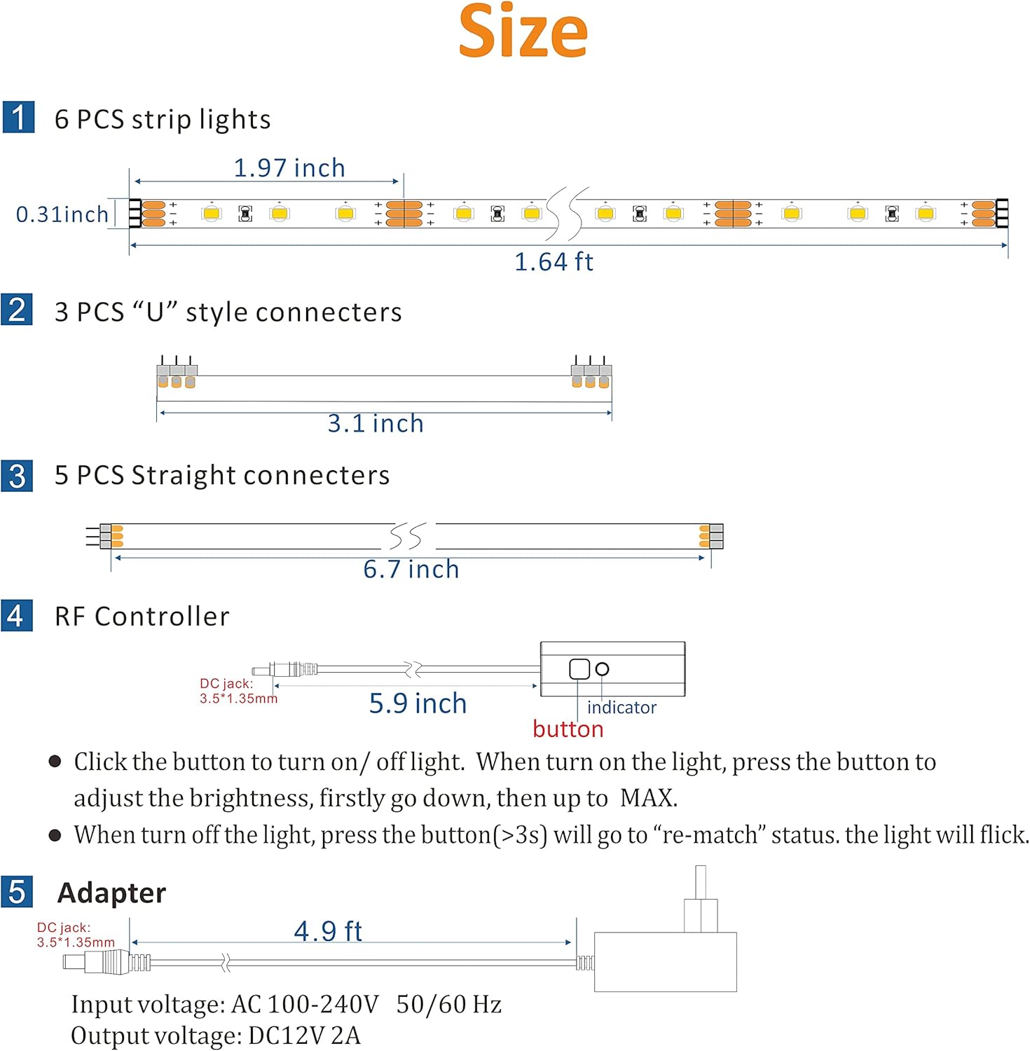 Super Bright & Brightness adjustable:Super bright LED cabinet lights delivers total 1500 lumen,Came with RF dimmer to adjust the brightness. LED’s CRI is greater than 82,providing high-quality lighting