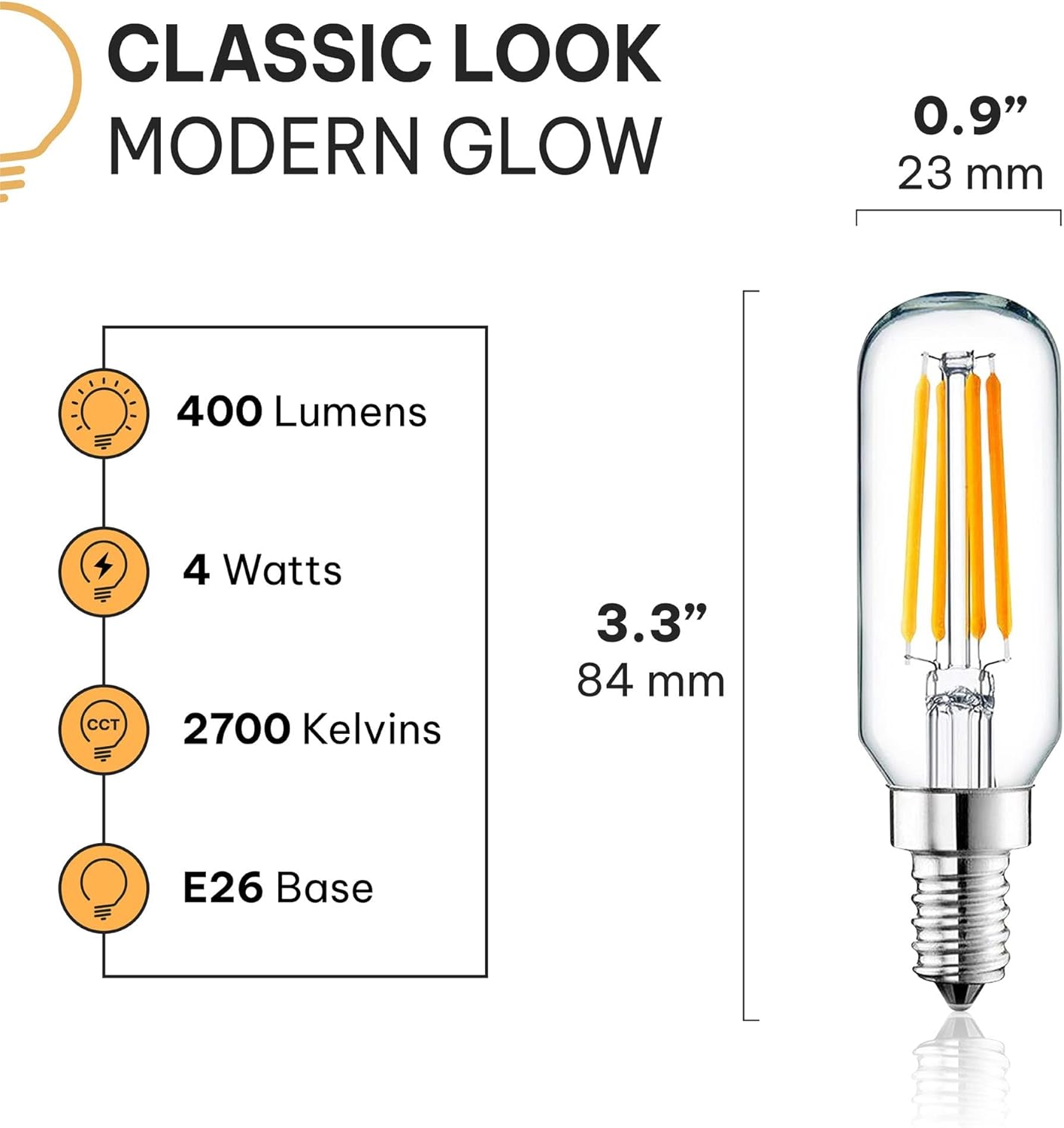 Timeless Design: These T6/T25 vintage candelabra light bulbs reflect the classic style of small-base candle lights, offering a nostalgic yet modern appeal. Tthey emit a soft, warm glow, perfect for any chandelier or ceiling light bulbs