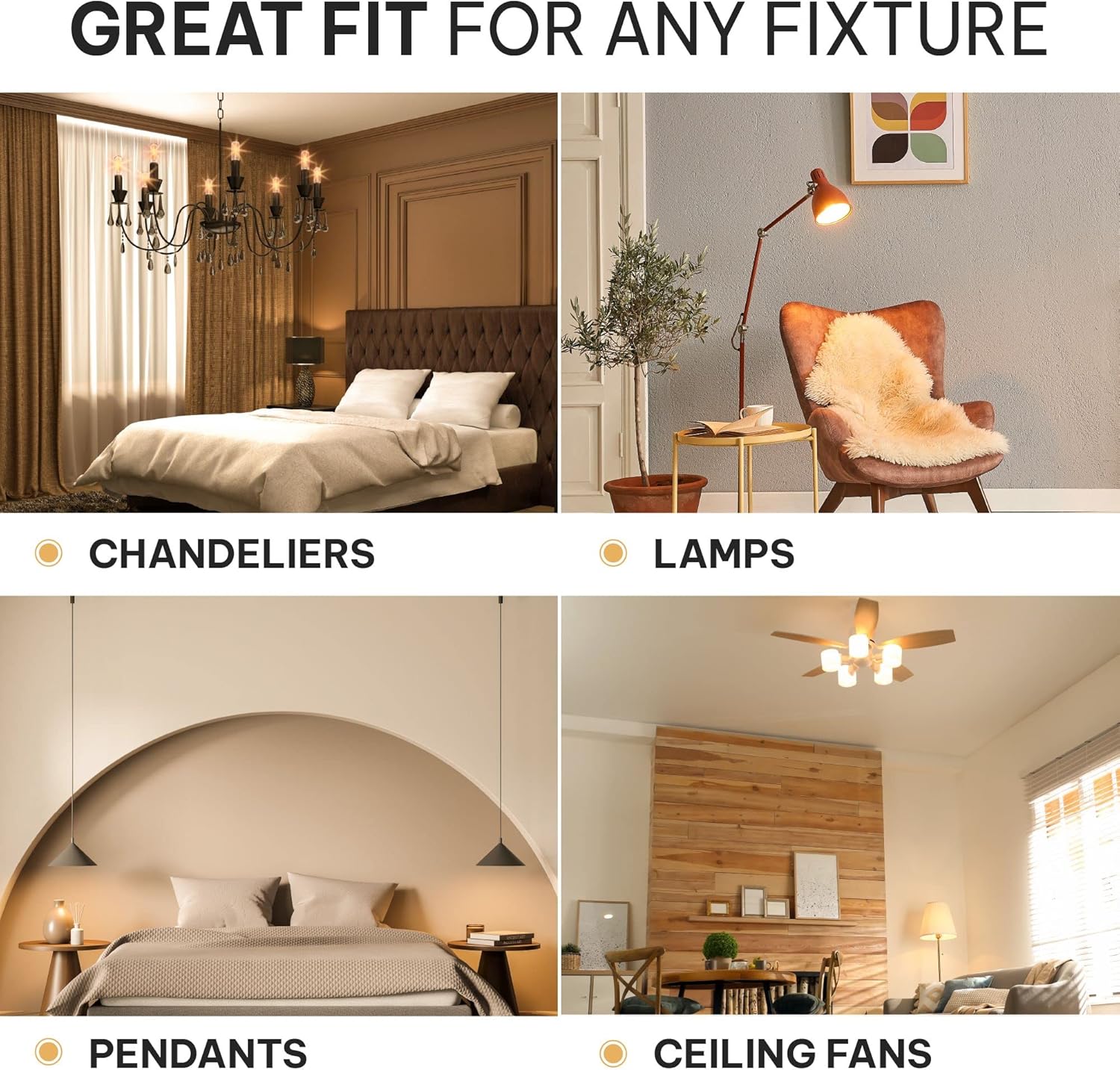 Optimal Use: These candelabra led light bulbs fit into any E12 small screw base, fitting small base candle light bulb for chandelier, ceiling fan, sconce, desk lamp or porch lights