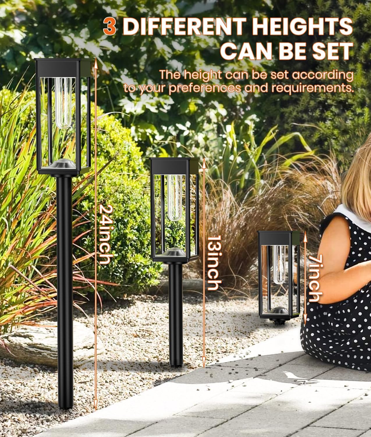 All-Weather Durability: With their IP65 waterproof rating, these solar garden lights are built to withstand various weather conditions, ensuring long-lasting performance even during rainy or snowy days.