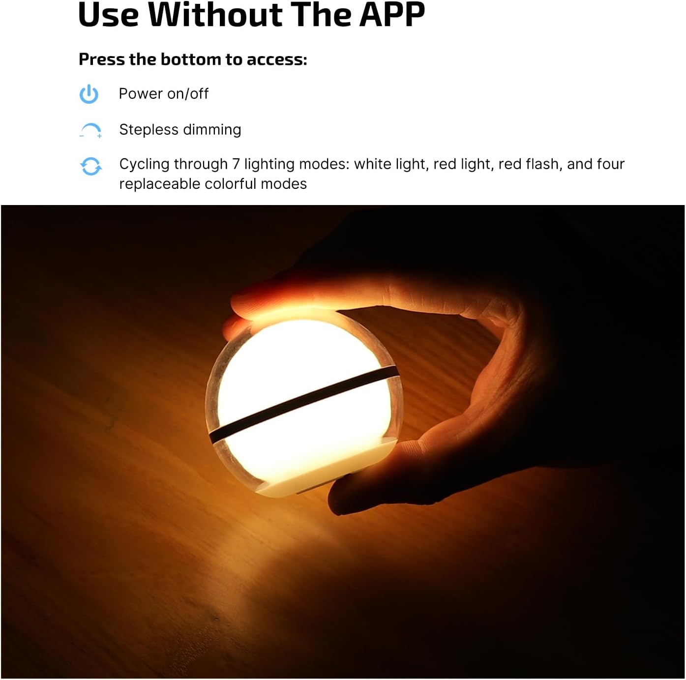 𝗦𝗲𝘁𝘂𝗽 𝗬𝗼𝘂𝗿 𝗖𝗼𝗹𝗼𝗿𝗳𝘂𝗹 𝗟𝗶𝗴𝗵𝘁𝗶𝗻𝗴: Sphere desk light offers 7-bottom switch lighting and 20 app-controlled lighting, including white light, red light, red flash, and vibrant dynamic or static colors