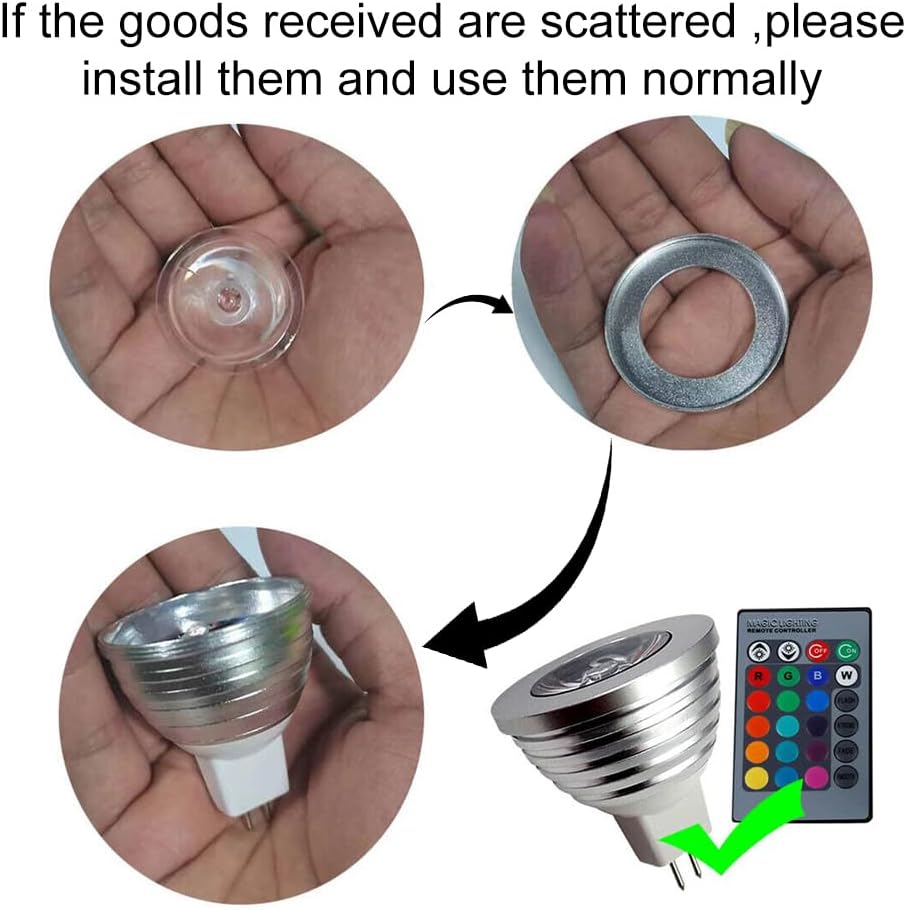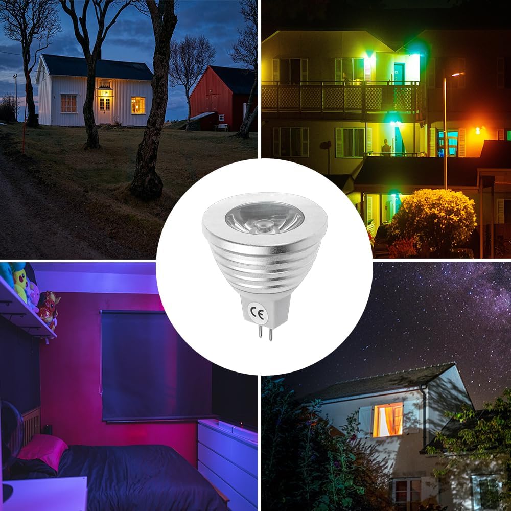 MR16(GU5.3) 3W RGB light bulb: It owns independent LED RGB lamp beads which can issue a colorful effect and give you a romantic or dynamic atmosphere.