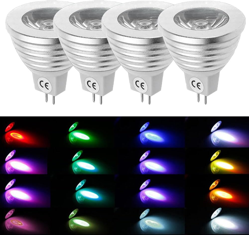 4pack LED Color Changing Light Bulb,MR16 3W RGB Spotlight with IR Remote Control Mood Ambiance Lighting Colorful LED Light
