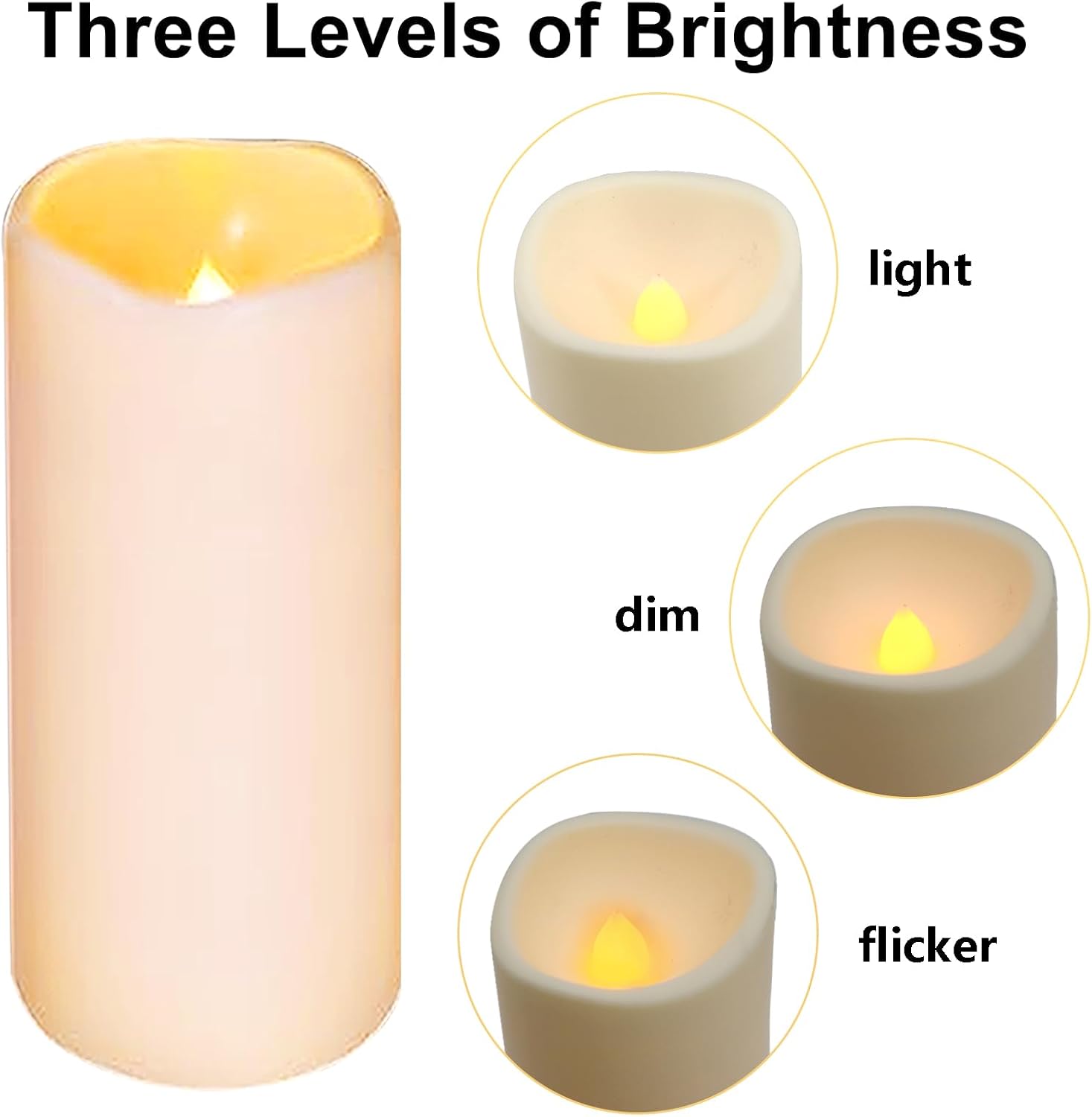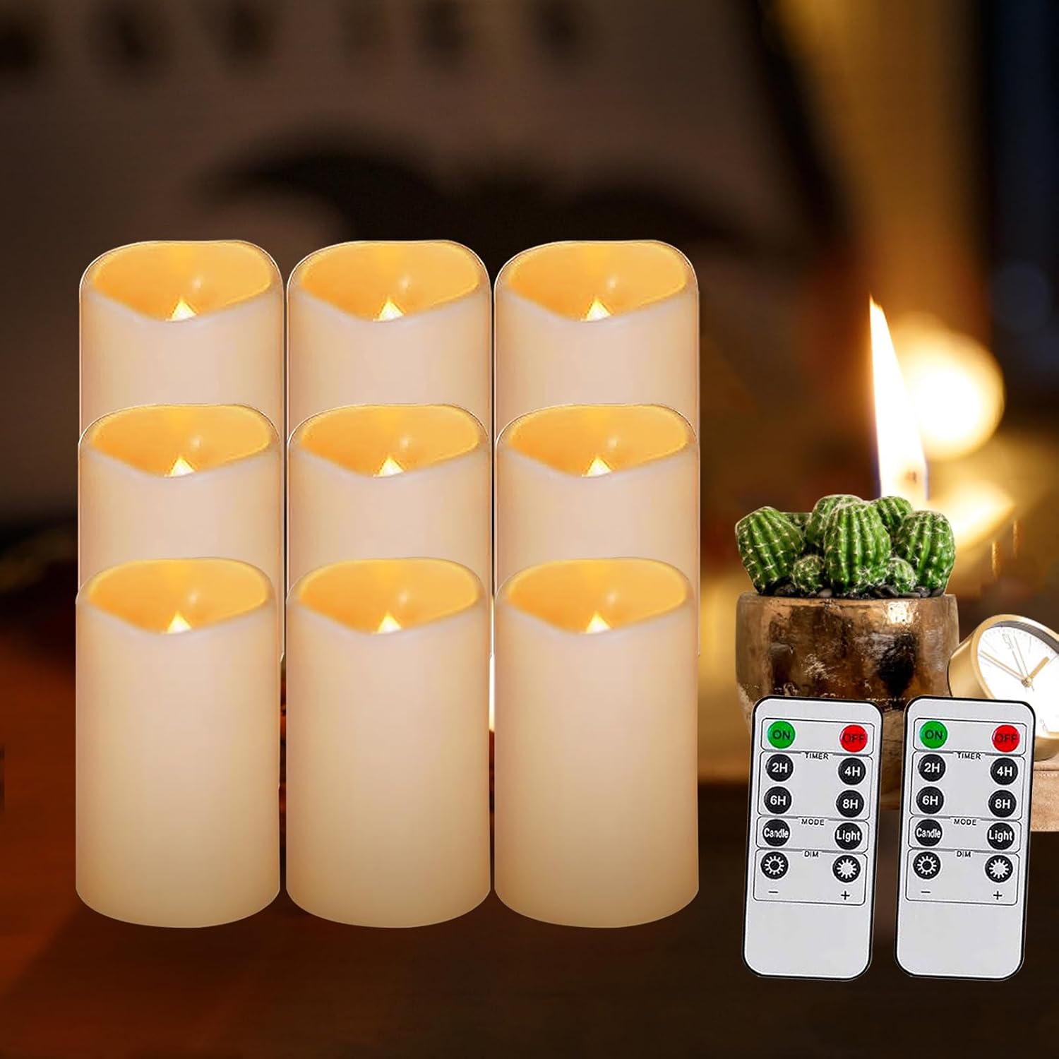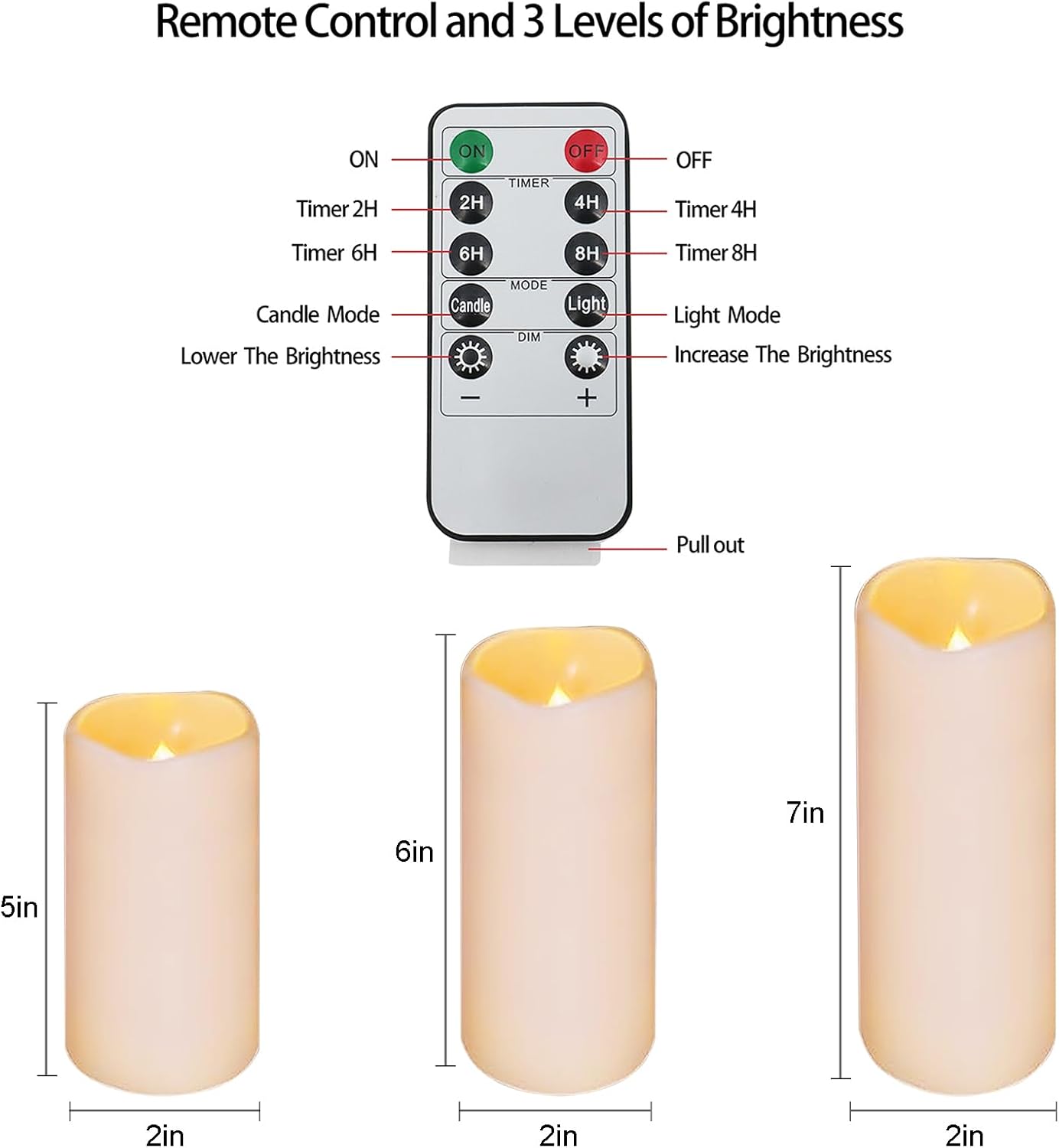 Automatic Timer: led candles with the 10-key remote control,flameless candles with remote feature two modes and brightness settings,the timer is set, the battery candles comes on at the same time each day and stays on for either 2 hours-8 hours