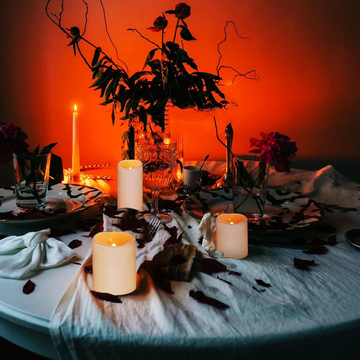 Multi-Purpose: Enjoy the warm and romantic atmosphere created by battery candles flickering,led candles with remote with timercan be applied to birthdays, Home decorations, bars, hotels, outdoor parties, holidays, garden weddings, or other occasions