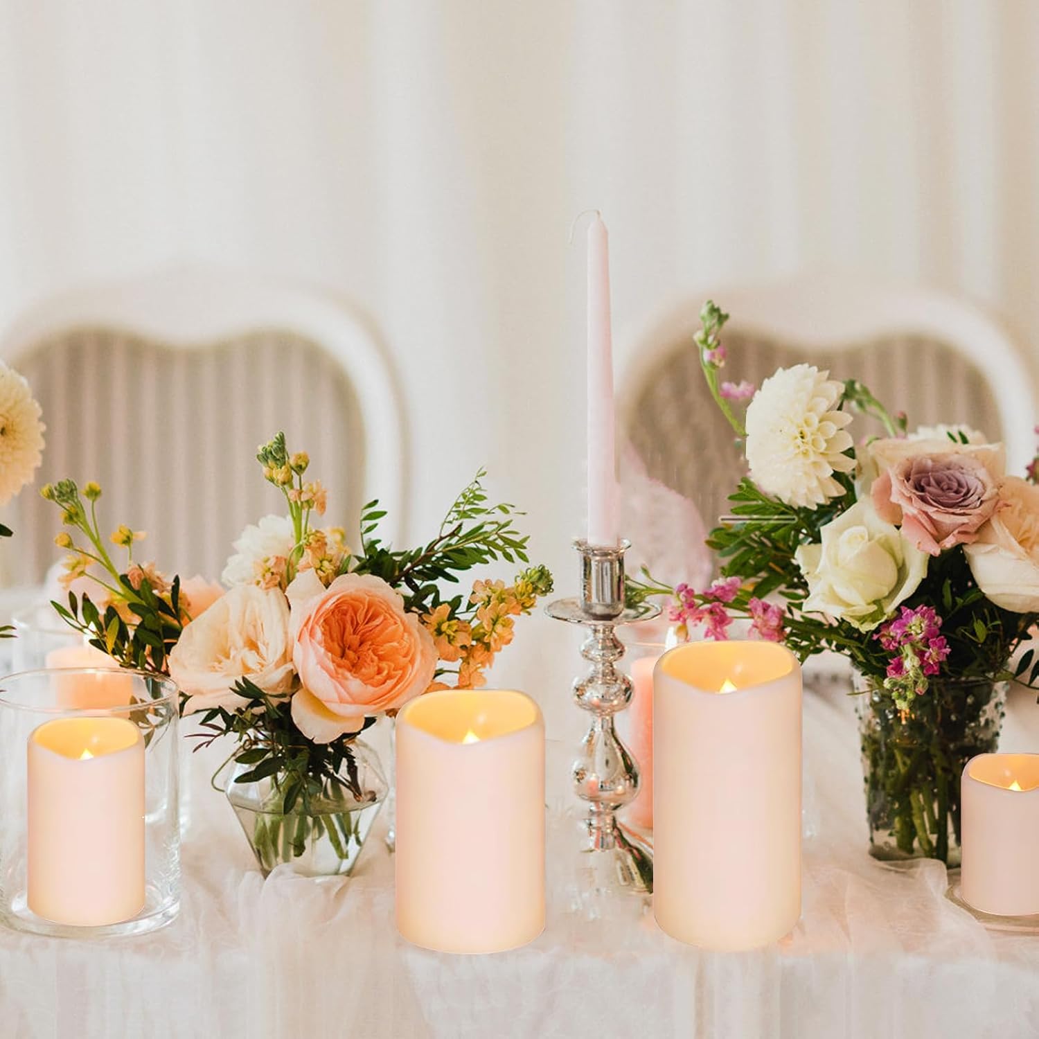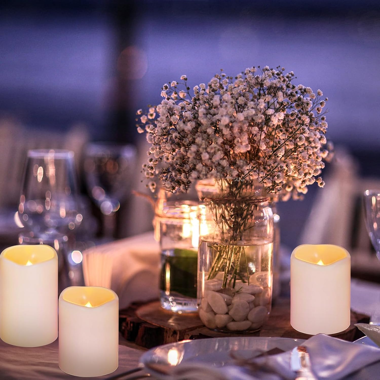 Realistic Flickering Flameless Candles: Experience the warm ambiance of real candles with our fake candles featuring realistic flickering LED lights,The reusable and flameless nature of battery operated candles ensures that your home safe