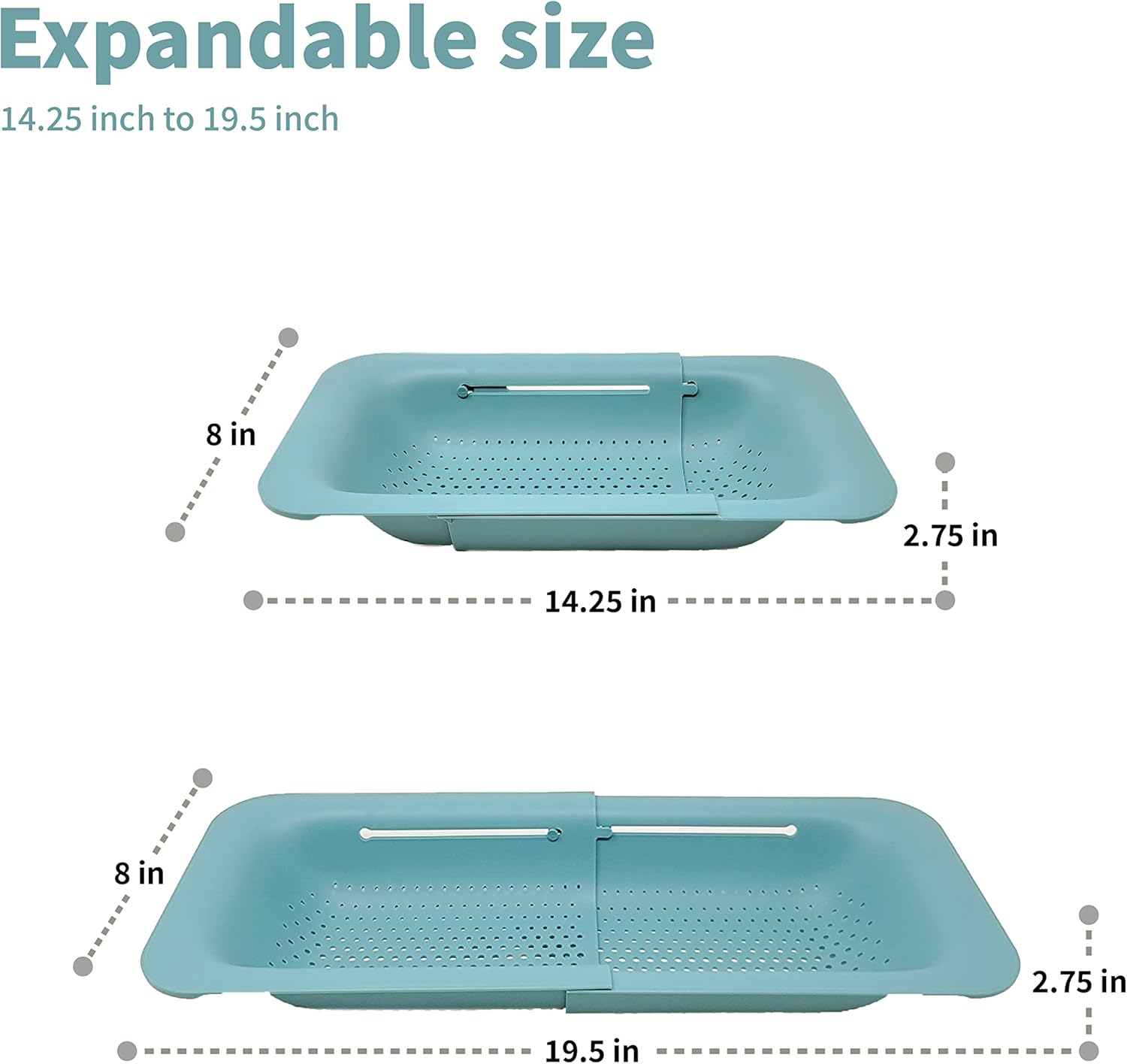 Versatile And Multi-Purpose: The kitchen basket drain strainer colander expands from 14.25 – 19.5 inches to offer ample space for draining pasta and fruits, thawing frozen food, air drying dishes, and more to provide the perfect fit for all your filtering, washing and rinsing needs