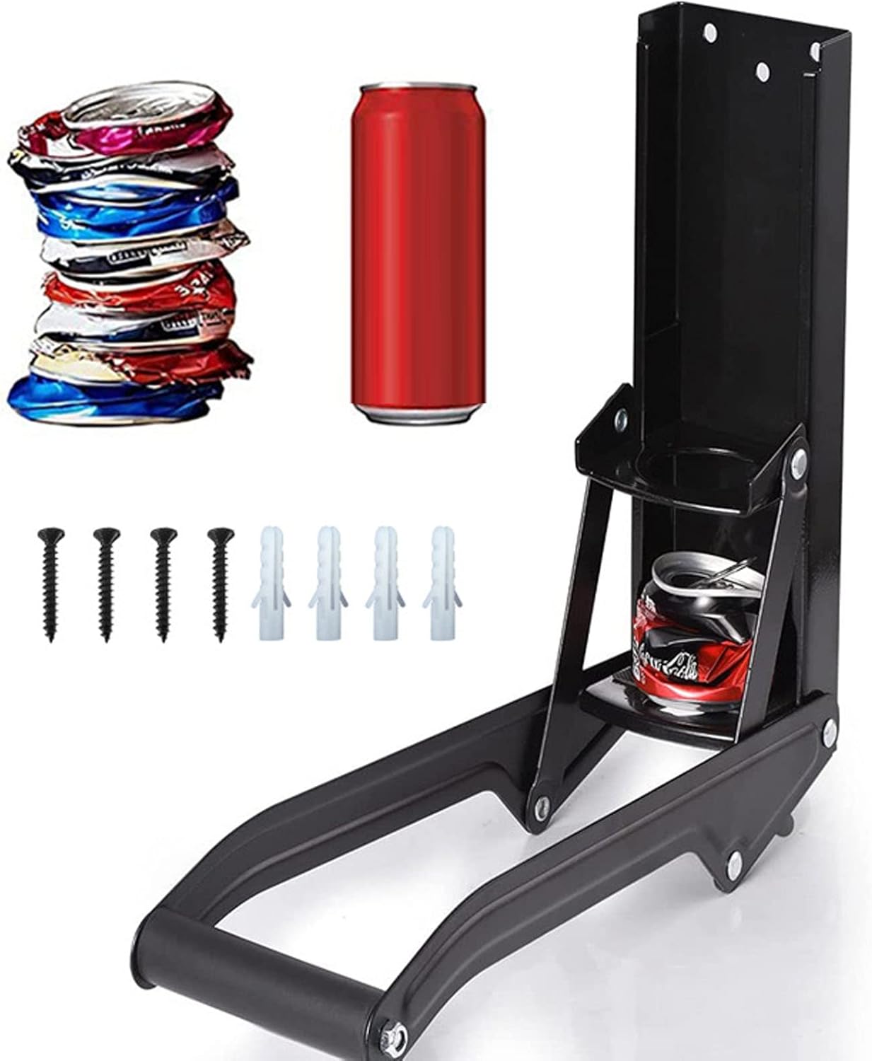 ¡¾Efficient and simple crushing of cans¡¿This can crusher helps recycle 16oz and 12oz aluminum soda , and beer cans . Providing great convenience . Efficient 1 hand operated recycling and reducing the size of tall aluminum seltzer , soda , beer , water , pops jars , plastic bottles . Wall mounted hand pulled cans press cans compression flatten