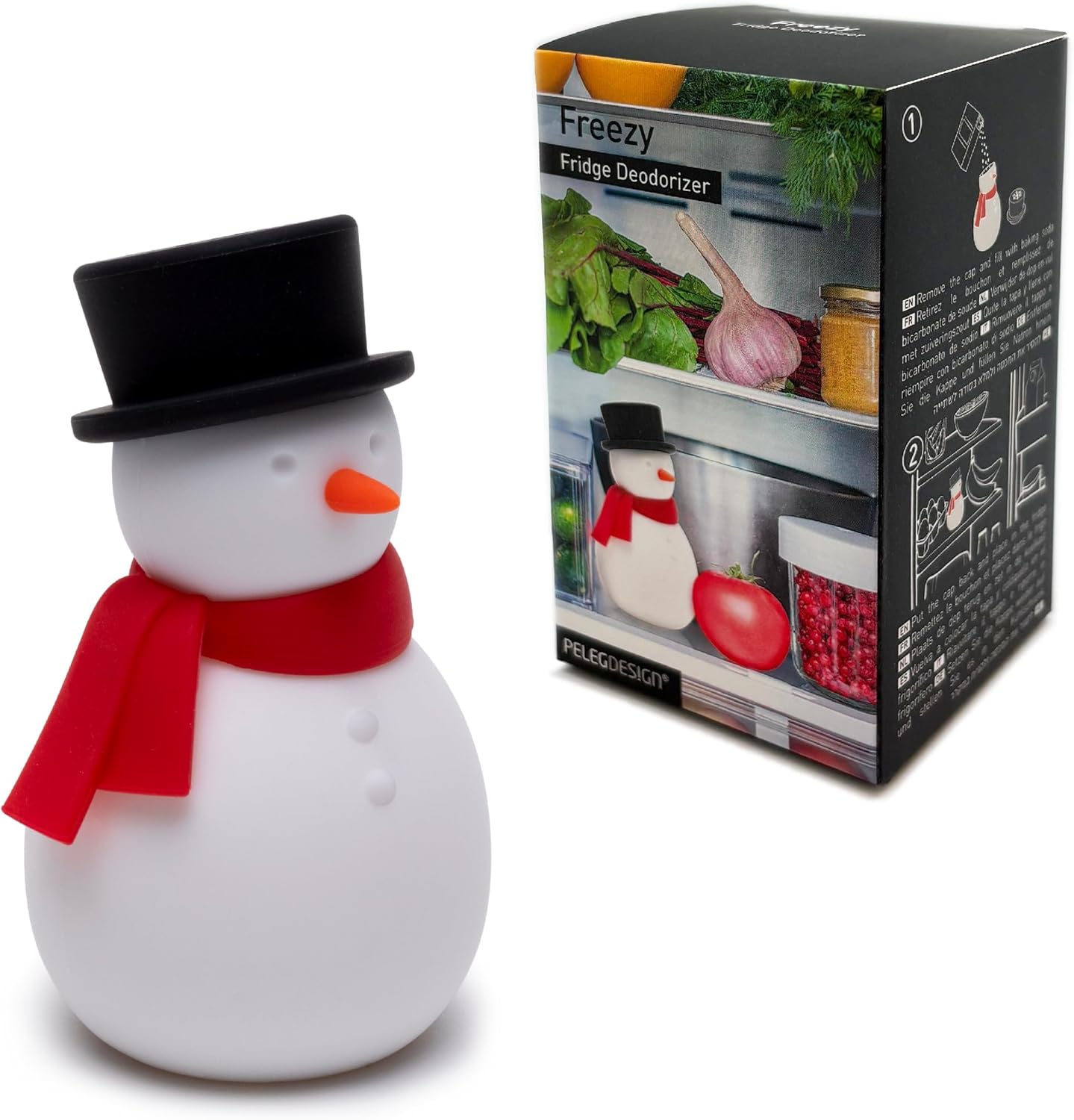 NEW – Peleg Design Freezy Fridge Deodorizer Odor Eliminator – Cute Snowman Baking Soda Container, Reusable Silicone Refrigerator Freshener, Fun Kitchen Gadget for Home Improvement