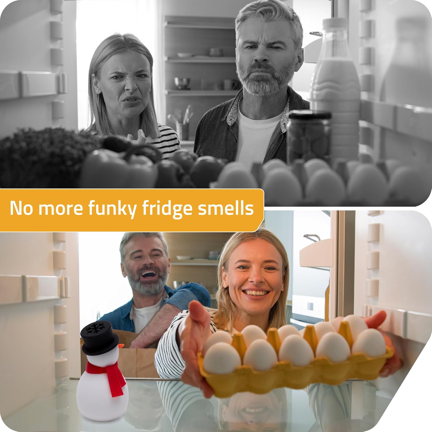 Charming & Functional Gift – With his adorable snowman design, this fridge deodorizer odor eliminator is a practical refrigerator deodorizer and a delightful gift for housewarmings, holidays, or fans of fun kitchen gadgets.