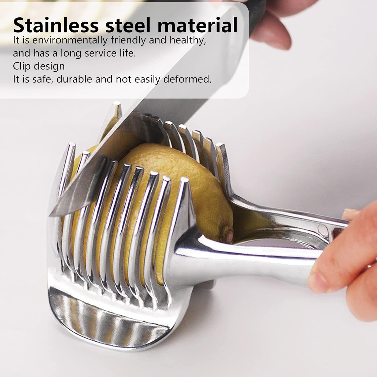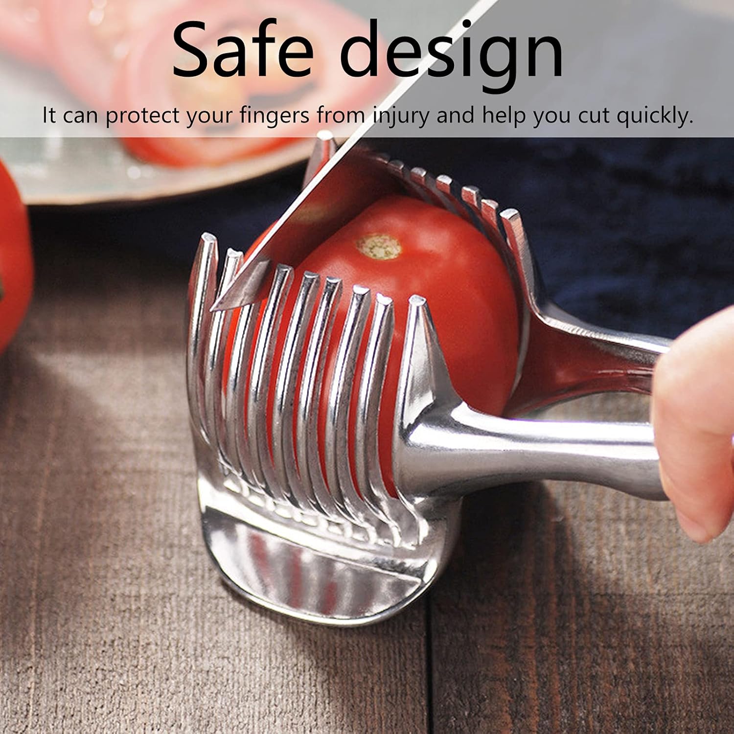 Onion Cutter, Stainless Steel Handheld Round Tomato Slicer Multifunctional Fruit & Vegetable Holder for Kitchen Restaurants Kitchen Cutting Aid Gadgets Tool