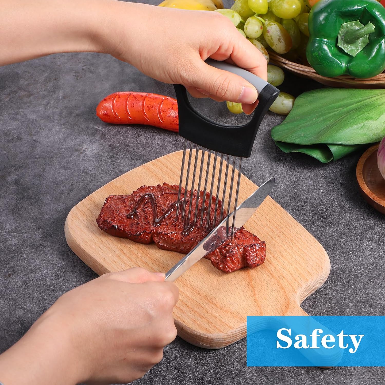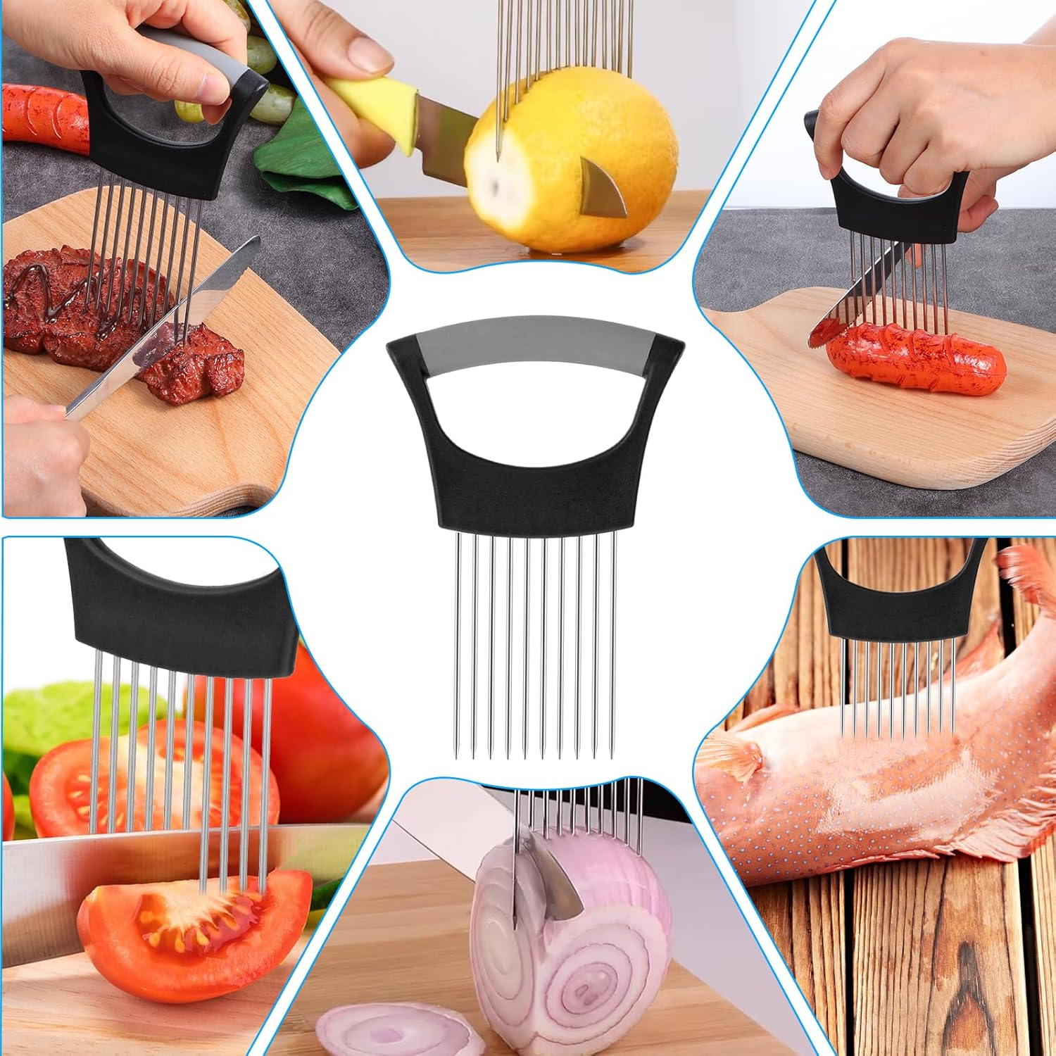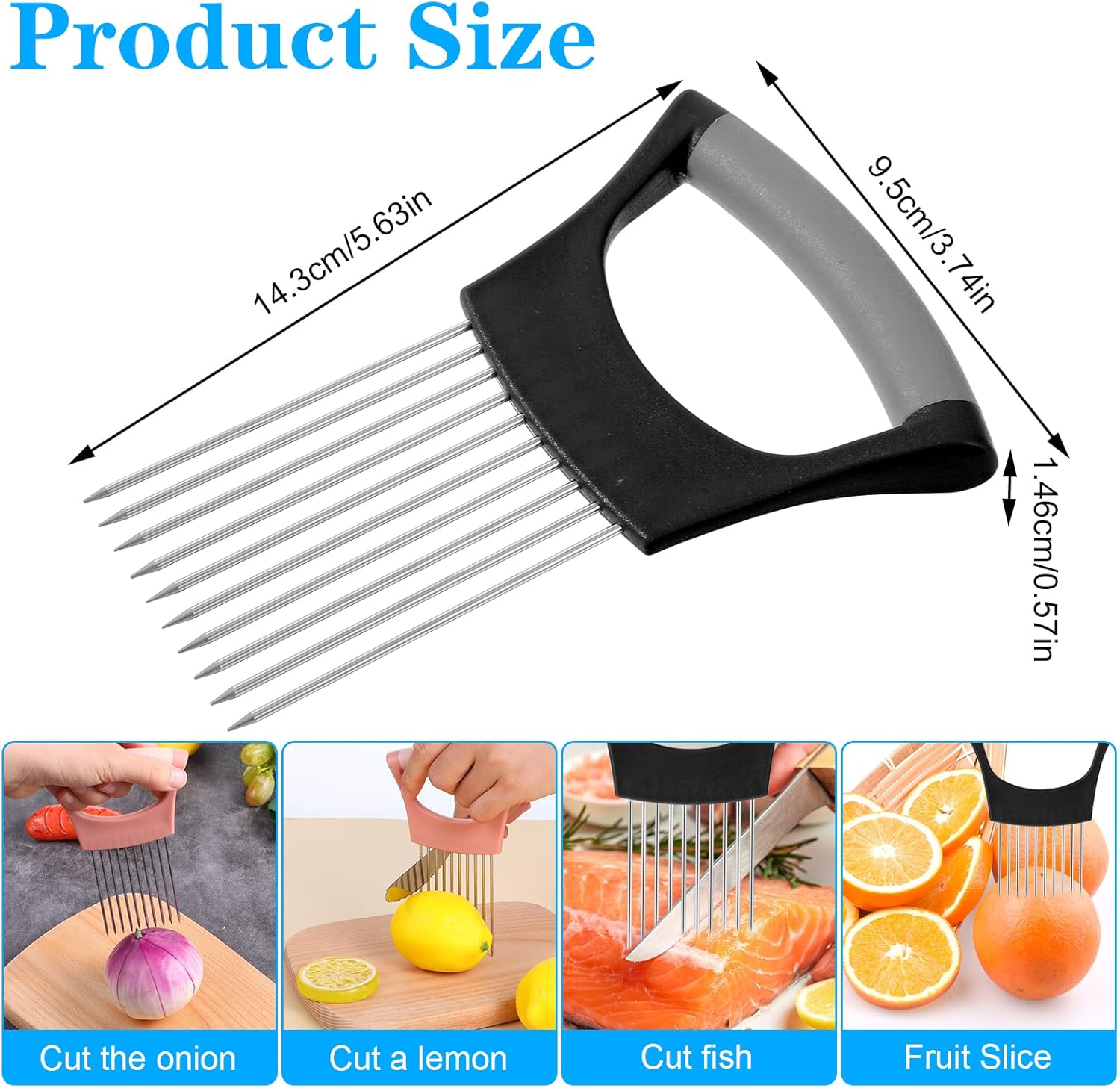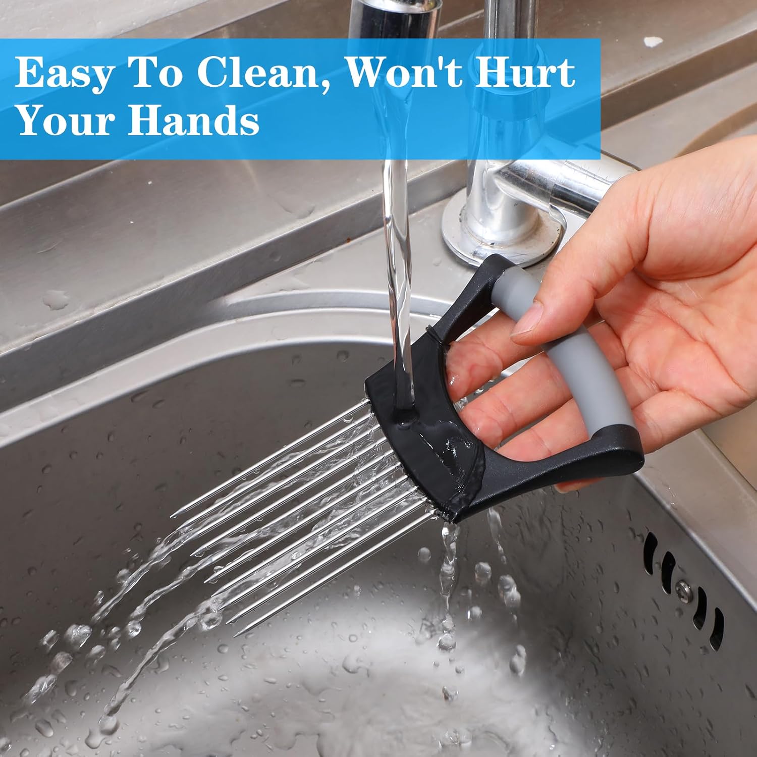 Safety Design: Our onion slicer features a secure grip mechanism that firmly holds vegetables in place, significantly reducing the risk of accidental slips and cuts. The innovative design creates a protective barrier between your hand and the sharp blade, ensuring a safe and worry-free slicing experience. Whether you’re a seasoned chef or a home cook, the safety-focused design makes this onion chopper an excellent choice for users of all skill levels.
