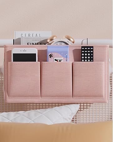 Convenient Access: The dorm bed caddy includes a wide opening main pocket, 3 front pockets, and 2 side mesh pockets, making this bedside caddy for dorm bed perfect for storing reading books, remotes, snacks, and more.