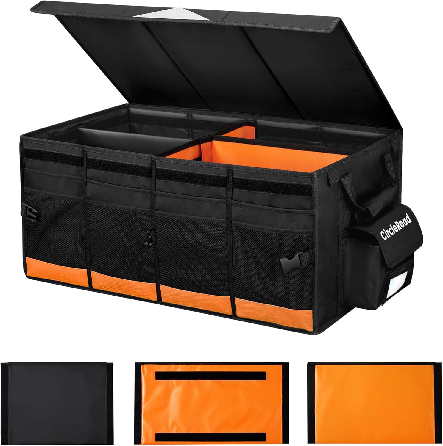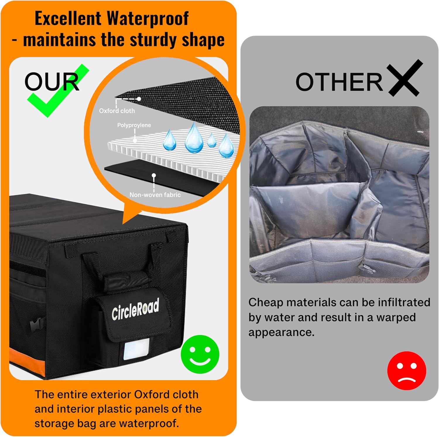 Adequate Space: CircleRoad trunk storage organizer have a capacity of 74L, enough to neatly place all kinds of accessories on your RV. The SUV organizer has double layered bags at the front and back, with one layer of cloth bag and one layer of mesh bag, allowing you to place small items inside for easy access.