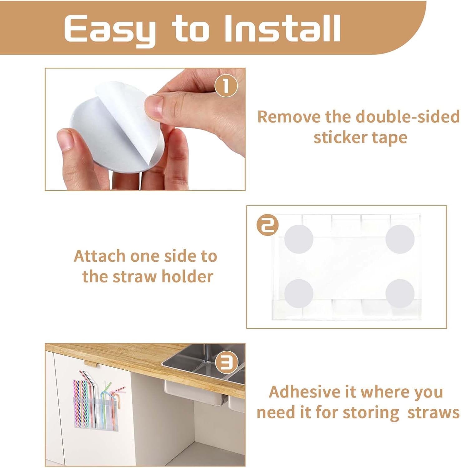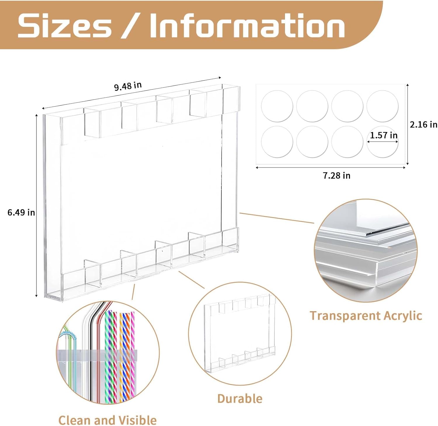 Straw Holder Inside Cabinet Door : This straw holder is made of high quality acrylic that is both durable and clear, allowing you to easily view and access your straws Its modern design complements any kitchen or bathroom decor. The straw dispenser feature ensures easy access to your straws, while the straw drying rack keeps straws clean and dry after use.You can open the package to get an acrylic straw holder, we also equipped with double-sided stickers