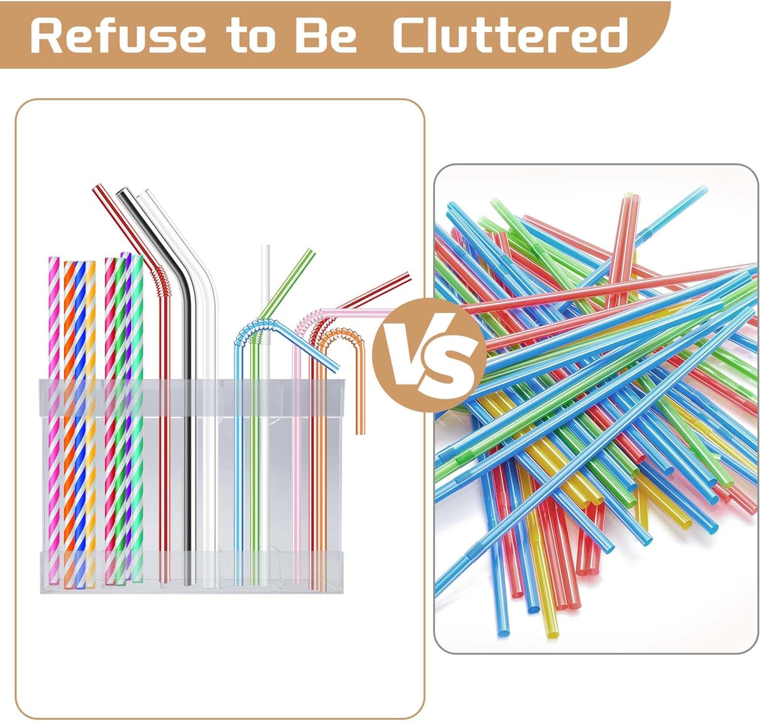Straw Storage Container : Beyond straws, this acrylic straw holder can also organize tumbler lids, coffee straws, and even small utensils. Its straw holder for bathroom design makes it a versatile addition to any room. The acrylic kitchen counter organizer is perfect for keeping your essentials within reach while maintaining a clean and tidy space