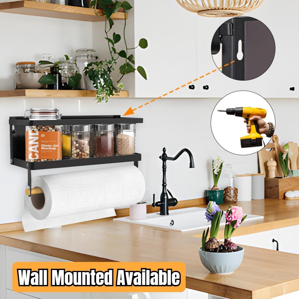 ✅【2-IN-1 KITCHEN ORGANIZER】: Magnetic Spice Rack doubles as a Magnetic paper towel holder, making it the perfect space-saving solution for small kitchens, apartments, or limited spaces. No more cluttered countertops! Plus, it can hold up to 6-8 pounds!