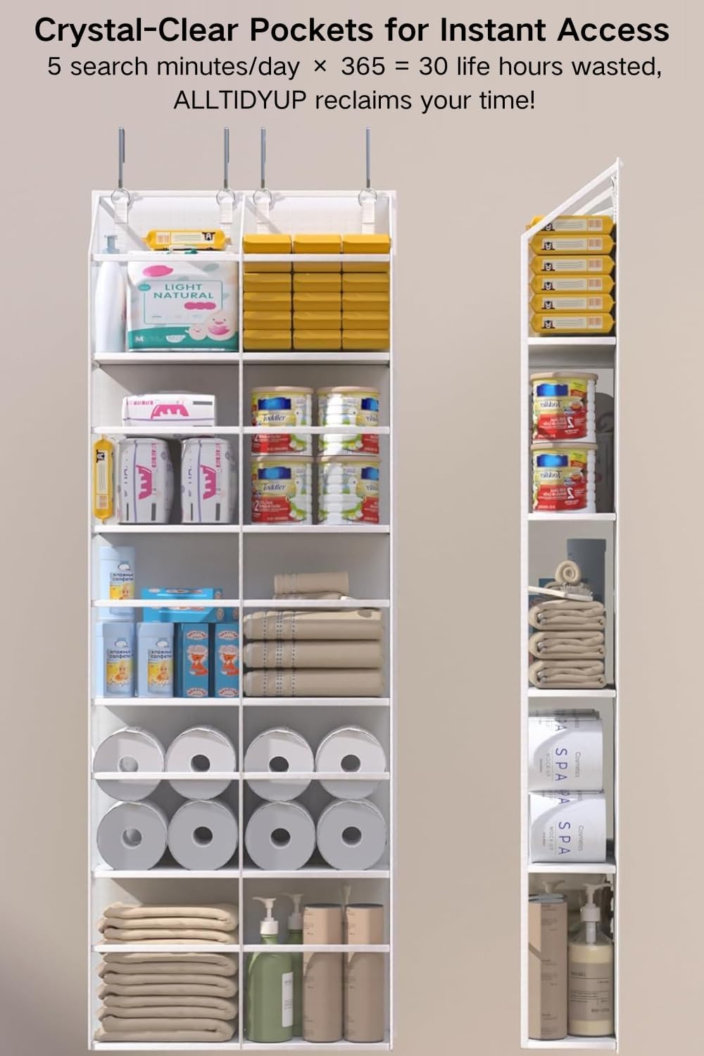 Tired of digging through cluttered shelves? Our over-door organizer turns chaos into clarity!!