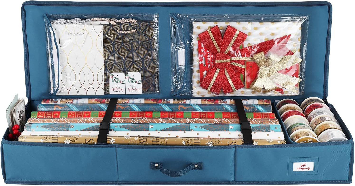 GIFT WRAP STORAGE – the ultimate solution for Christmas wrap paper storage, accessories, and supplies with the premium wrapping paper storage box! Keep an entire gift wrap collection neat and organized all in one place!, Dimensions: 14” x 40” x 6”.