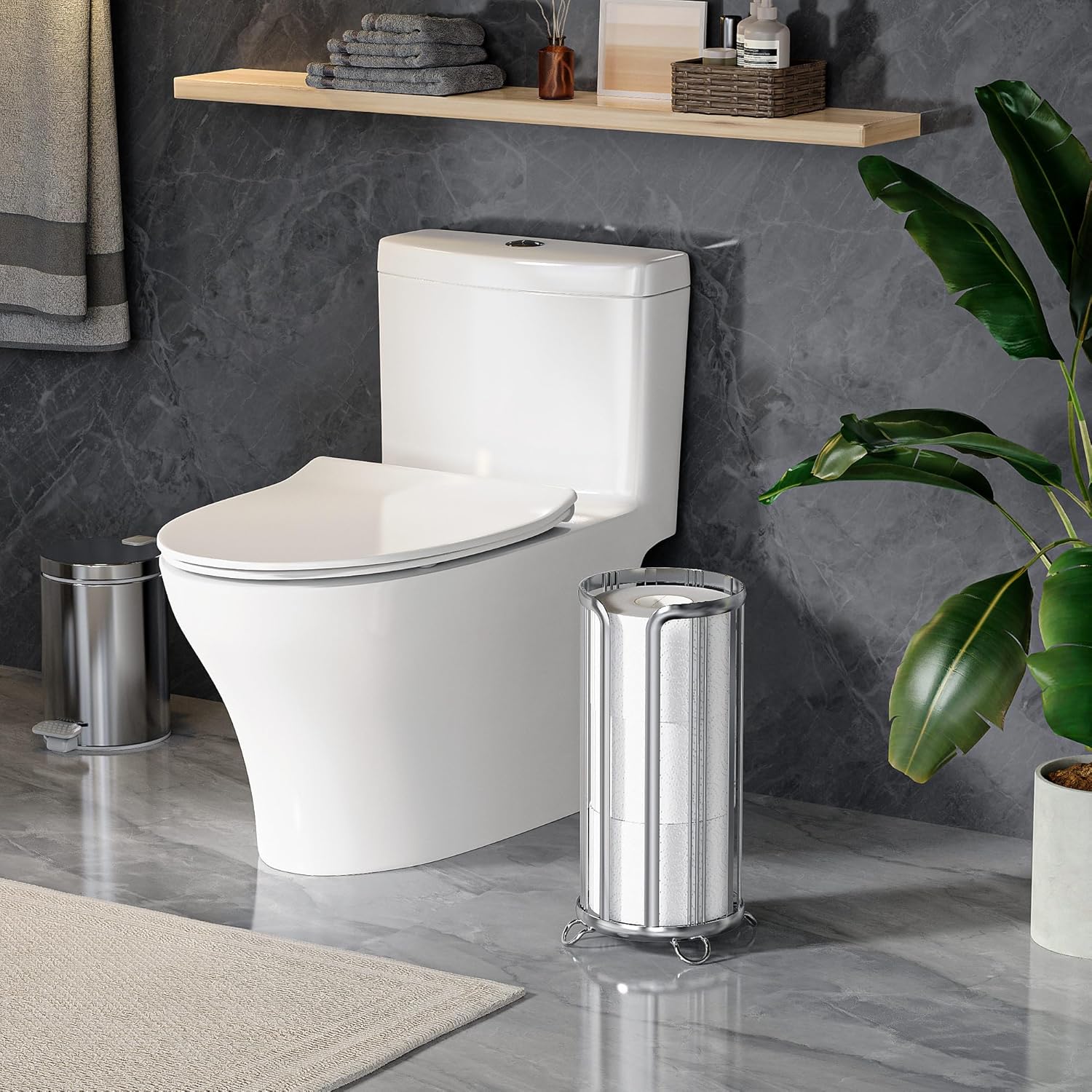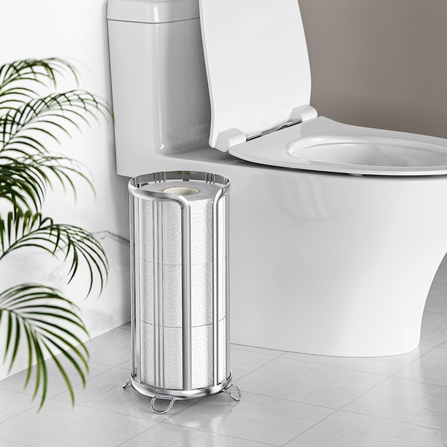Never run out of toilet paper again! This standing toilet paper holder features an open top and an easily accessible front, allowing you to grab a reserve roll effortlessly and quickly. It can accommodate jumbo toilet rolls and can hold 3 rolls with ease.