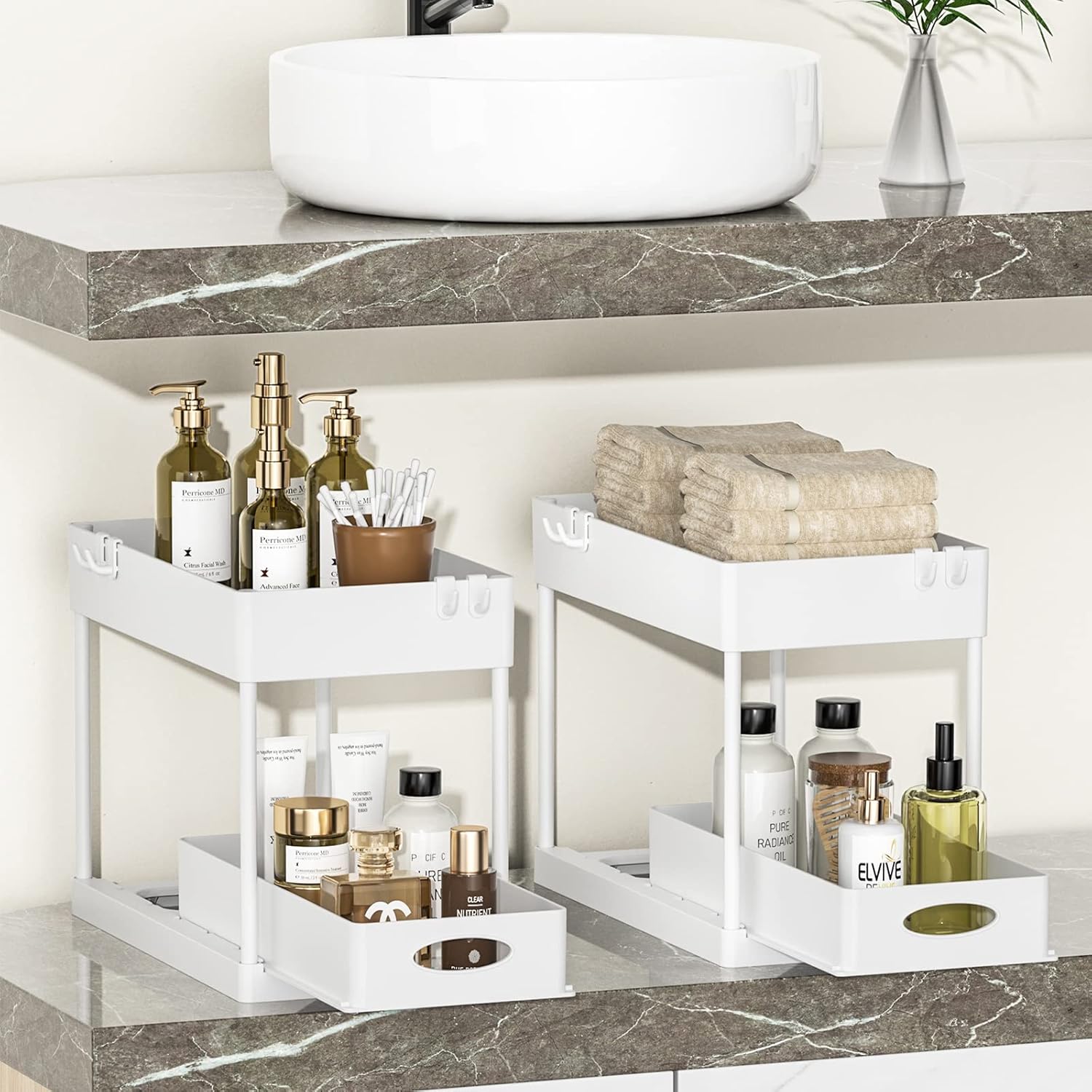 PUILUO 2 Sets of 2-Tier Bathroom Organizers and Storage