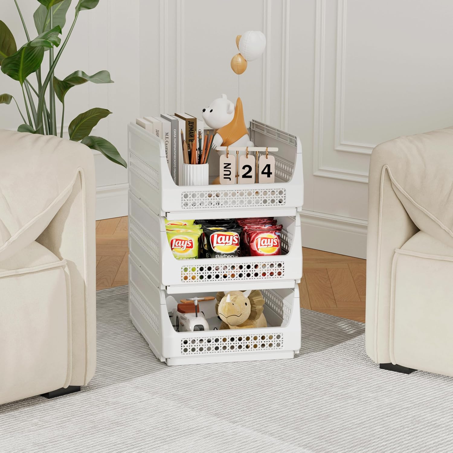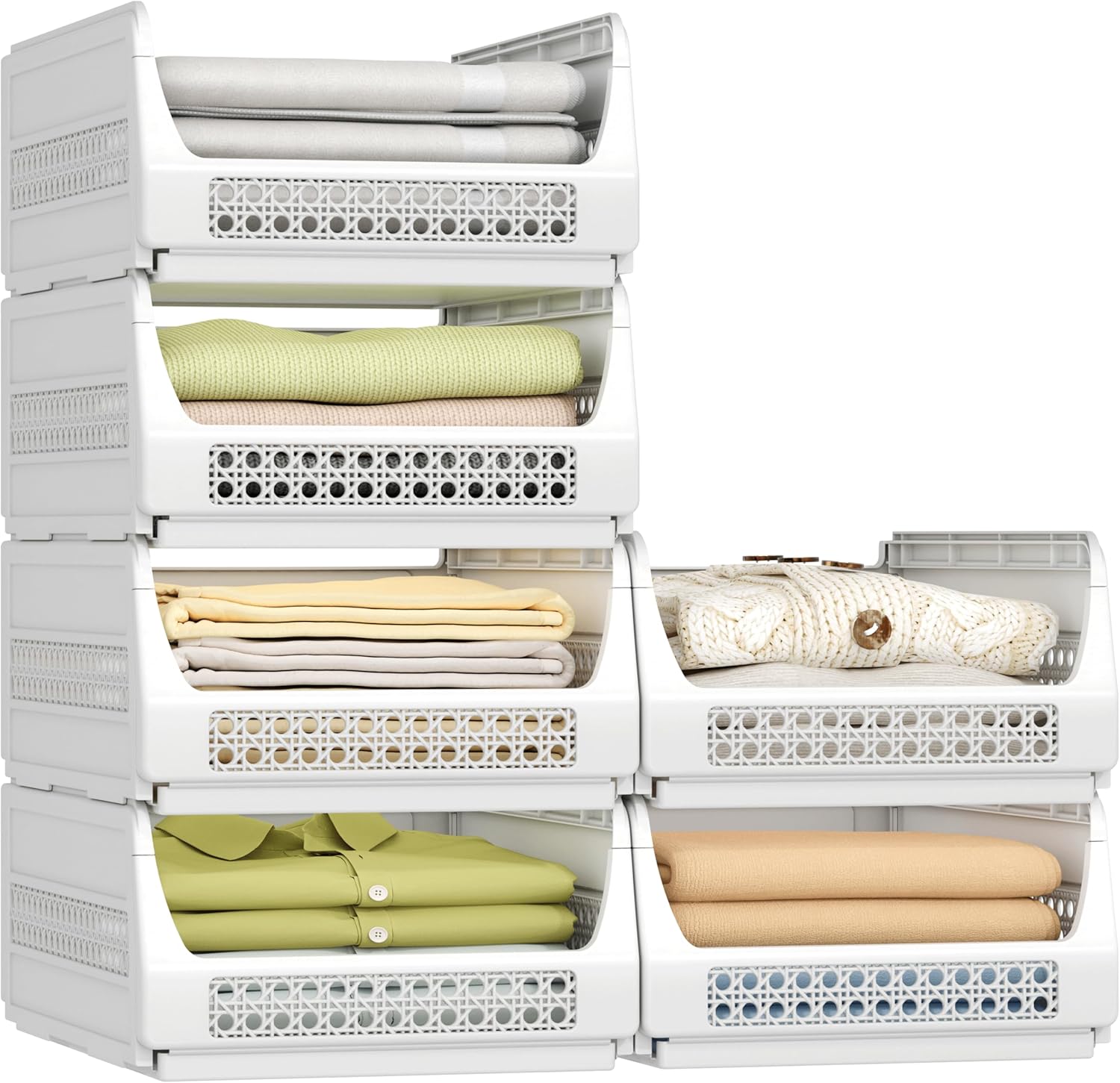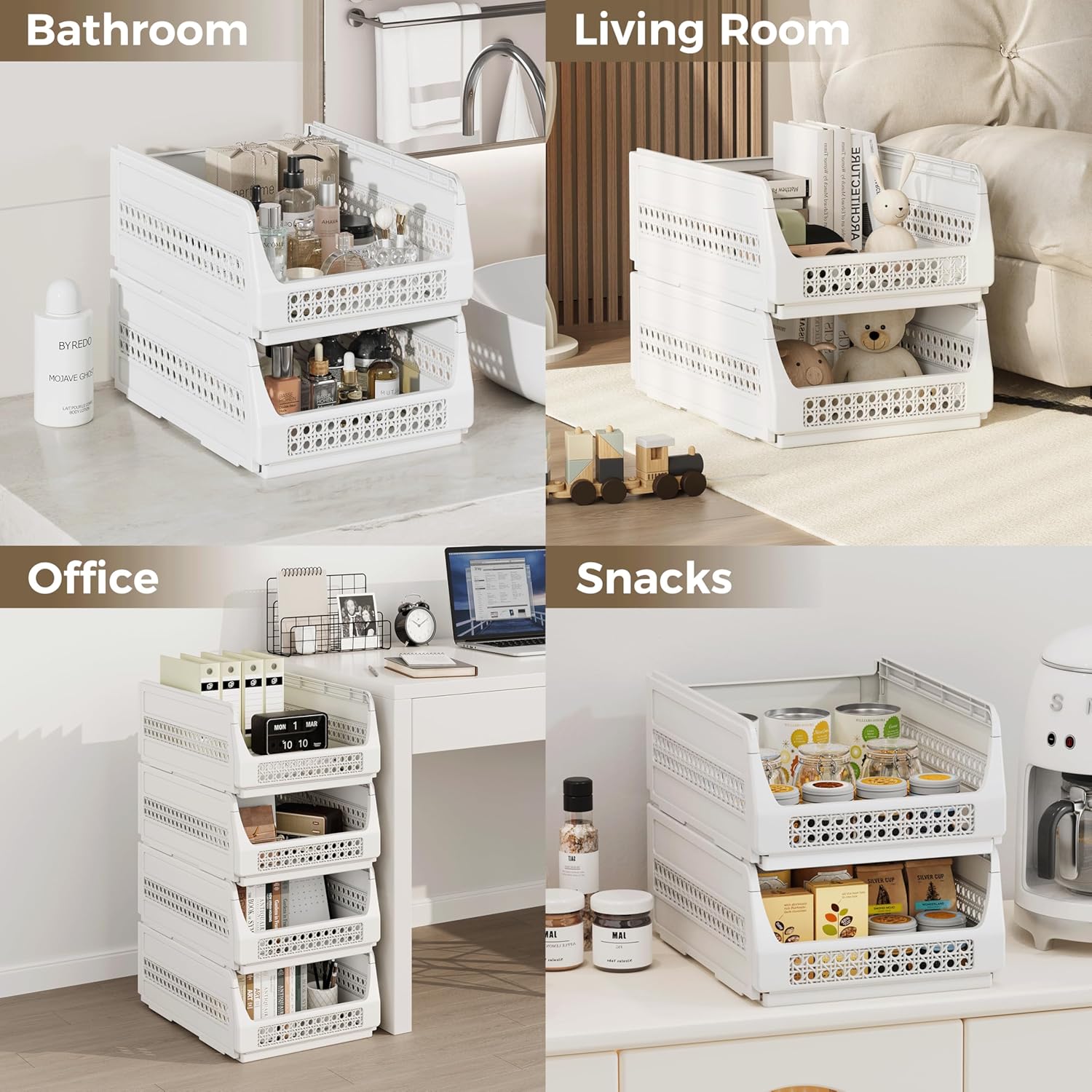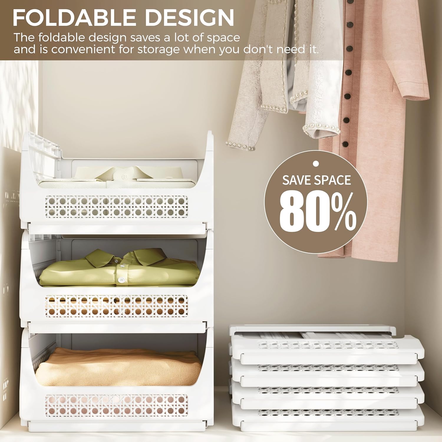 【Multifunctionality】 A Stackable Closet Organizer, perfect for storing folded clothes, pants, blankets, quilts and shoes, it’s a closet essential that also doubles as a storage solution. Use it in your cupboard, kitchen, bathroom, bedroom, office, or classroom to organize toys, snacks and files. This exquisite design cleverly integrates with the indoor environment, making storage both practical and artistic.
